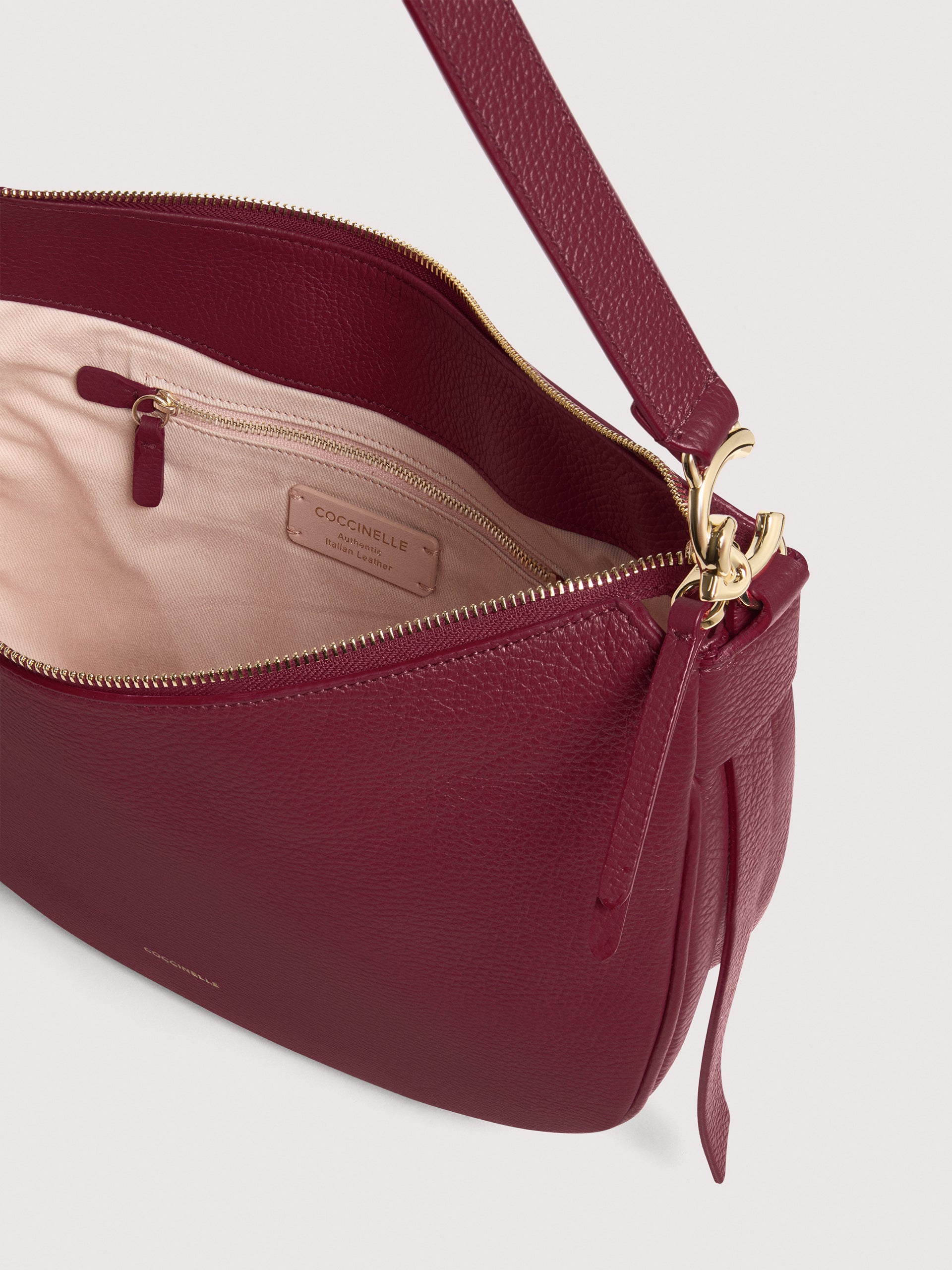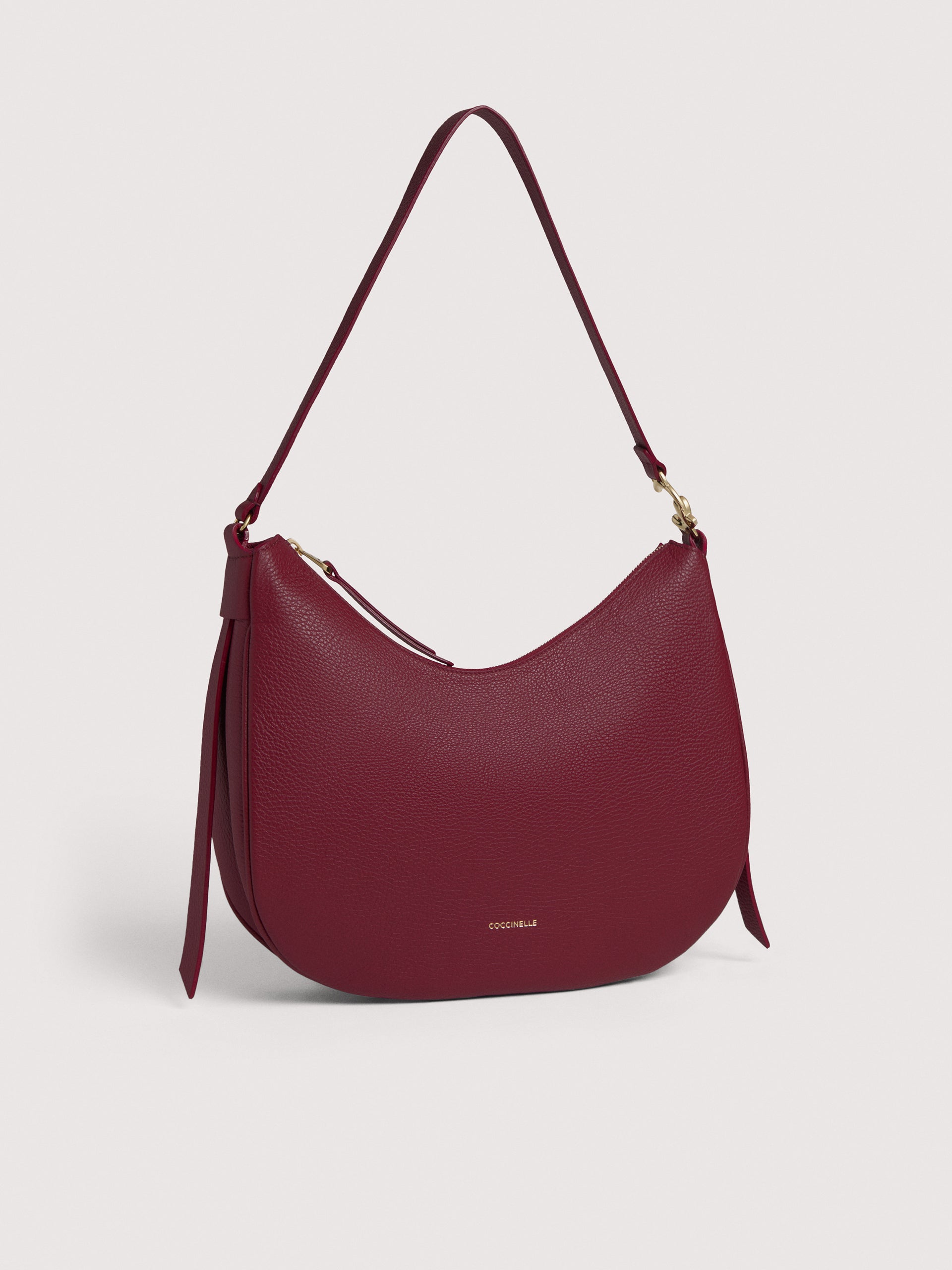 Coccinelle C-Easyは、レザーの美しさを引き立てるしなやかな曲線で形作れられたトートバッグです。 容量とインナーポーチが付随し、デザインの特徴としては、マグネット式の中央で開閉ができ、サイドを開いたままにすることも、レースとボタンスタッドクロージャを通してサイドを折りたたむことも可能です。 非常に汎用性の高いこのバッグを輝かしてくれるのはハンドル部分の新しい金属製のC-Meロゴです。 このモデルは特殊な機械で加工したレザーで作られており、その柔らかさを維持するためにタンブリング加工が施されてます。 非常に丈夫でお手入れの簡単なレザーなので、日常の使用に最適です。