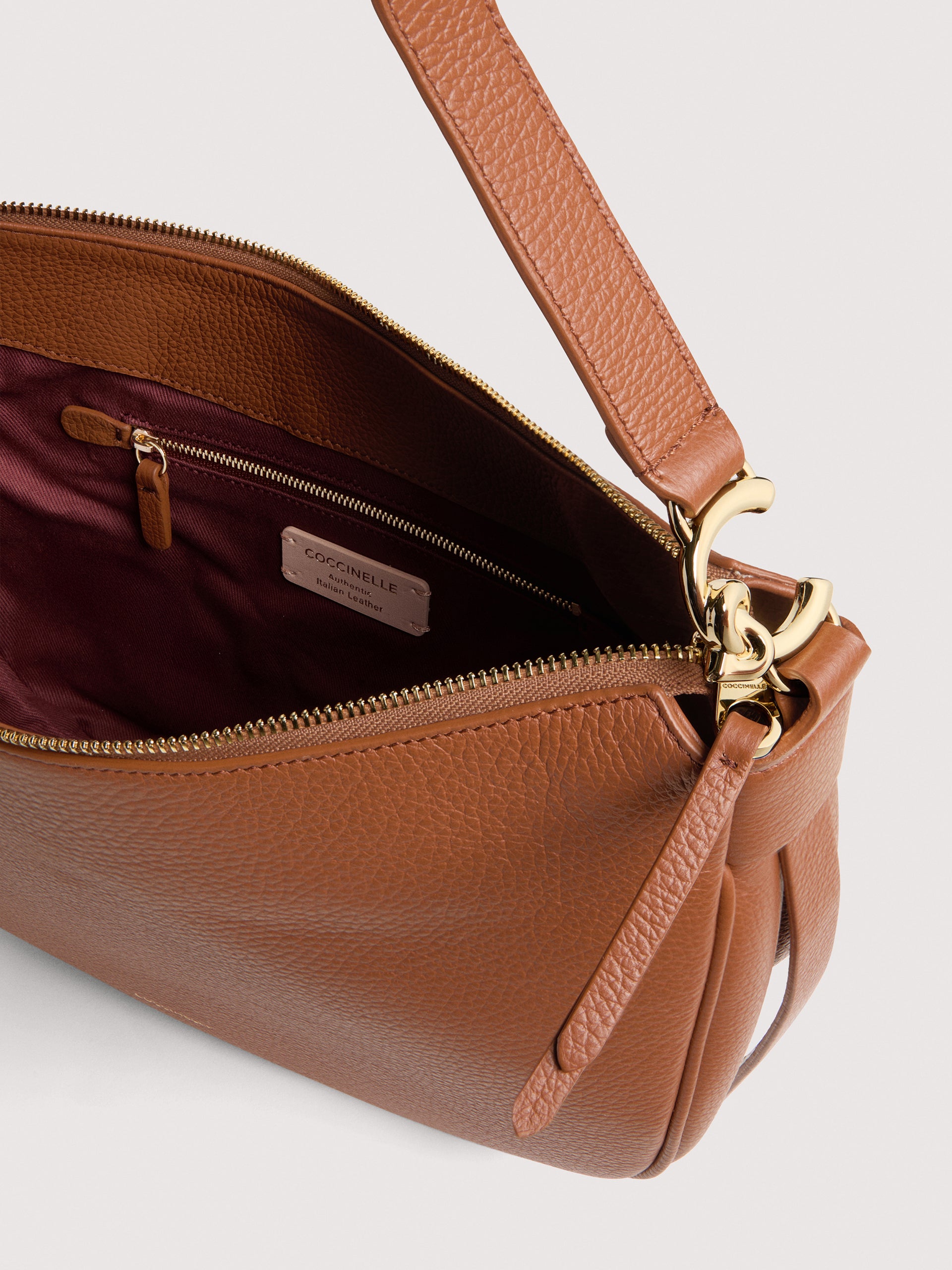 Coccinelle C-Easyは、レザーの美しさを引き立てるしなやかな曲線で形作れられたトートバッグです。 容量とインナーポーチが付随し、デザインの特徴としては、マグネット式の中央で開閉ができ、サイドを開いたままにすることも、レースとボタンスタッドクロージャを通してサイドを折りたたむことも可能です。 非常に汎用性の高いこのバッグを輝かしてくれるのはハンドル部分の新しい金属製のC-Meロゴです。 このモデルは特殊な機械で加工したレザーで作られており、その柔らかさを維持するためにタンブリング加工が施されてます。 非常に丈夫でお手入れの簡単なレザーなので、日常の使用に最適です。
