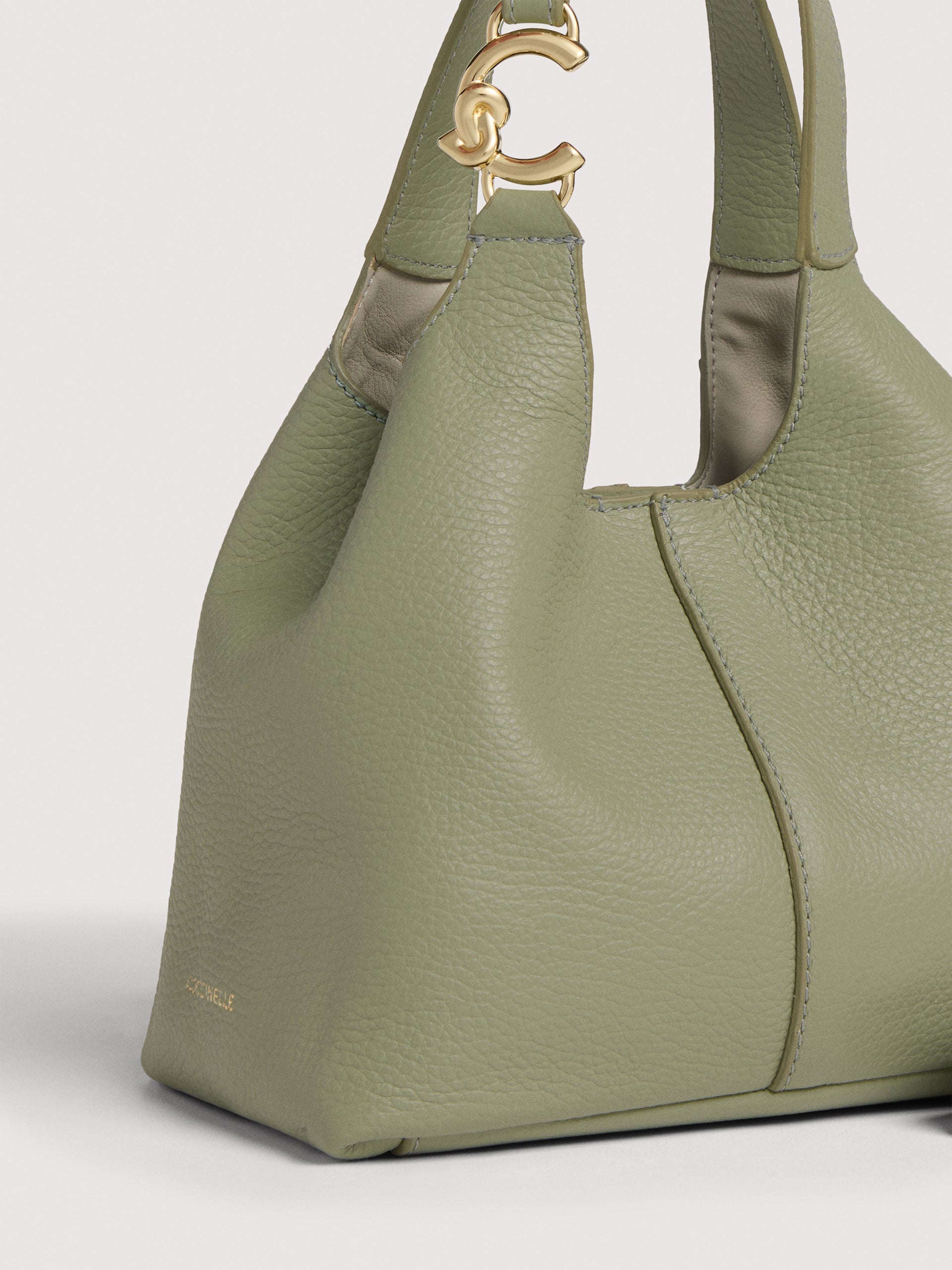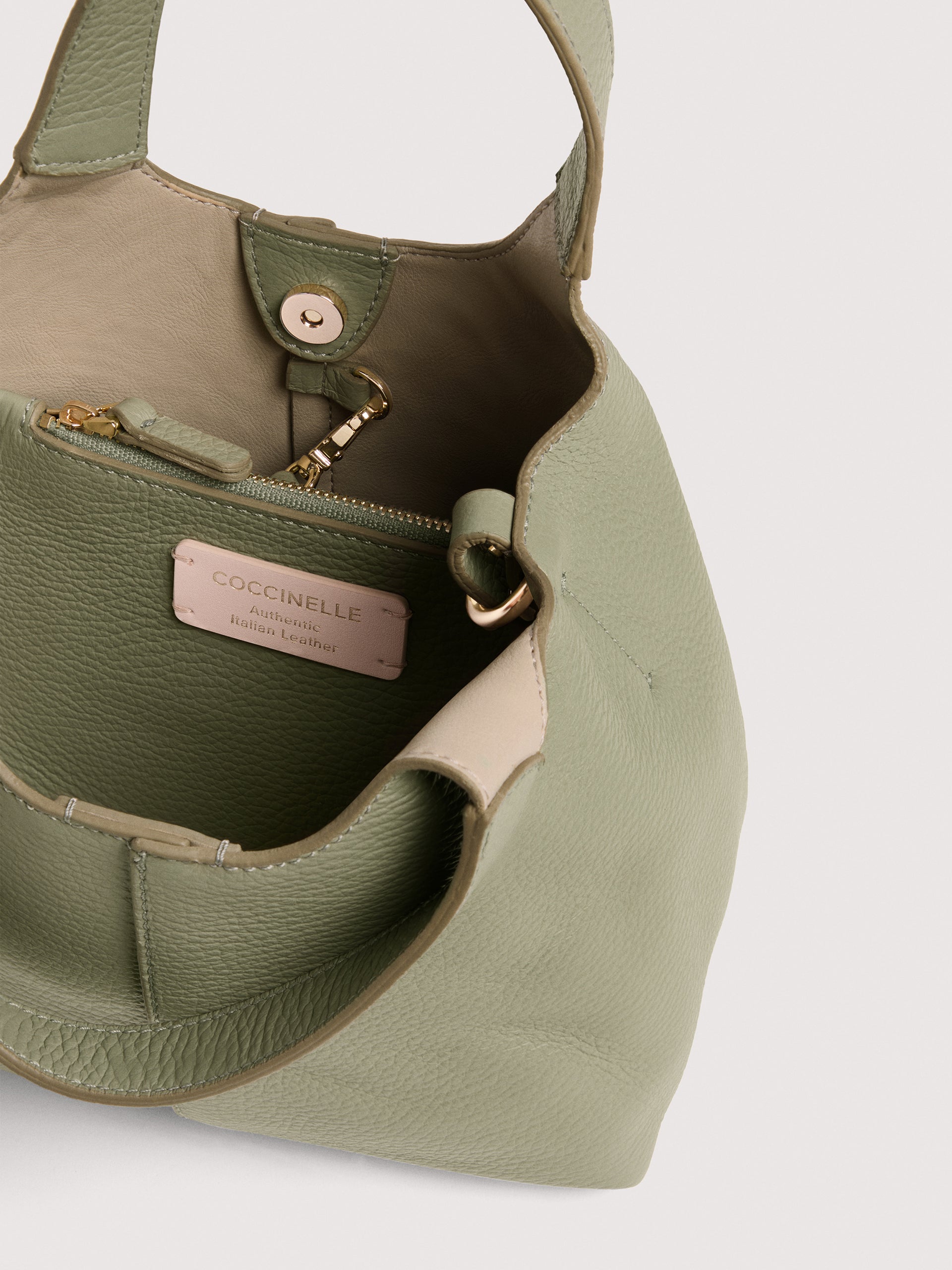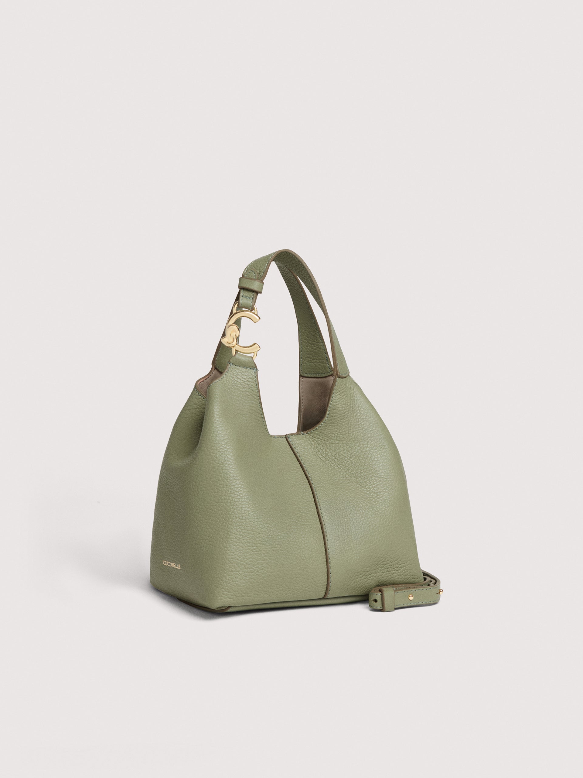 Coccinelle C-Easyは、レザーの美しさを引き立てるしなやかな曲線で形作られたハンドバッグです。 機能性は、レザーハンドルとショルダーストラップでトップハンドルバッグとしてもクロスボディとしても使え、2WAY使用のバッグです。 非常に汎用性の高いこのバッグを輝かしてくれるのはハンドル部分の新しい金属製のC-Meロゴです。 このモデルは特殊な機械で加工したレザーで作られており、その柔らかさを維持するためにタンブリング加工が施されています。 非常に丈夫でお手入れの簡単なレザーなので、日常の使用に最適です。