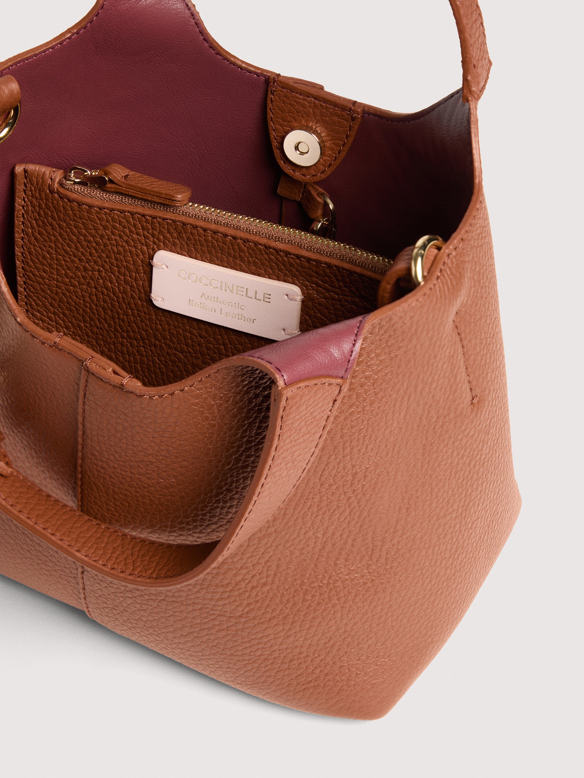 Coccinelle C-Easyは、レザーの美しさを引き立てるしなやかな曲線で形作られたハンドバッグです。 機能性は、レザーハンドルとショルダーストラップでトップハンドルバッグとしてもクロスボディとしても使え、2WAY使用のバッグです。 非常に汎用性の高いこのバッグを輝かしてくれるのはハンドル部分の新しい金属製のC-Meロゴです。 このモデルは特殊な機械で加工したレザーで作られており、その柔らかさを維持するためにタンブリング加工が施されています。 非常に丈夫でお手入れの簡単なレザーなので、日常の使用に最適です。