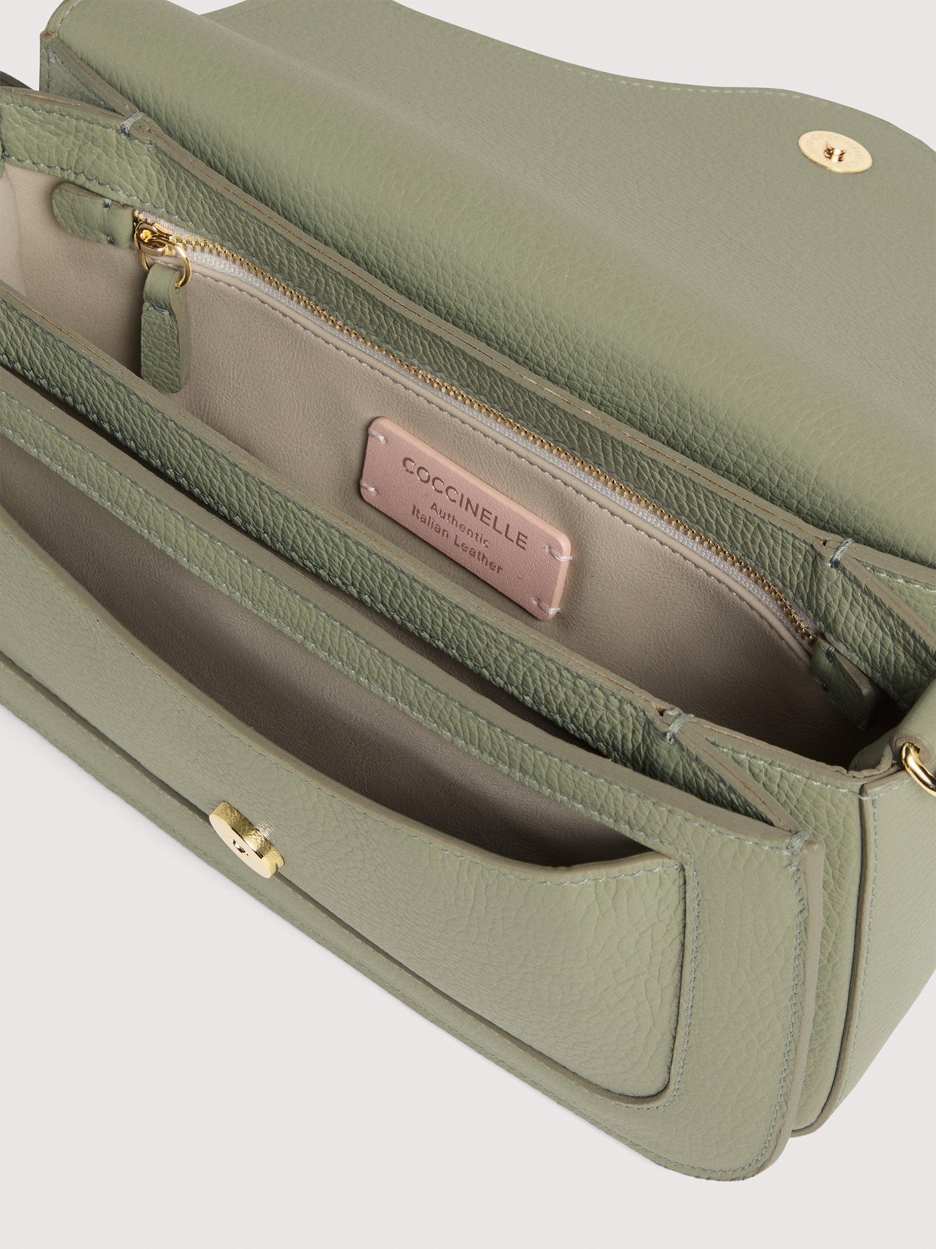 新しいブランドの象徴:コチネッレ C-ME。この新しいロゴはブランドのアイコンであるプレクトラムとブランドの頭文字”C"が統合したもので、女性の人生の過去と未来が絡み合いながら流れる様子を象徴してます。C-MEラインのサイドジップコインコンパートメントが特徴のウォレット。中のスペースは、必要なアイテムを丁寧に整理するために構成されています。このモデルは特殊な機械で加工したレザーで作られており、その柔らかさを維持するためにタンブリング加工が施されています。非常に丈夫な素材で作られ、手入れの簡単なレザーであるため、日常の使用に最適です。