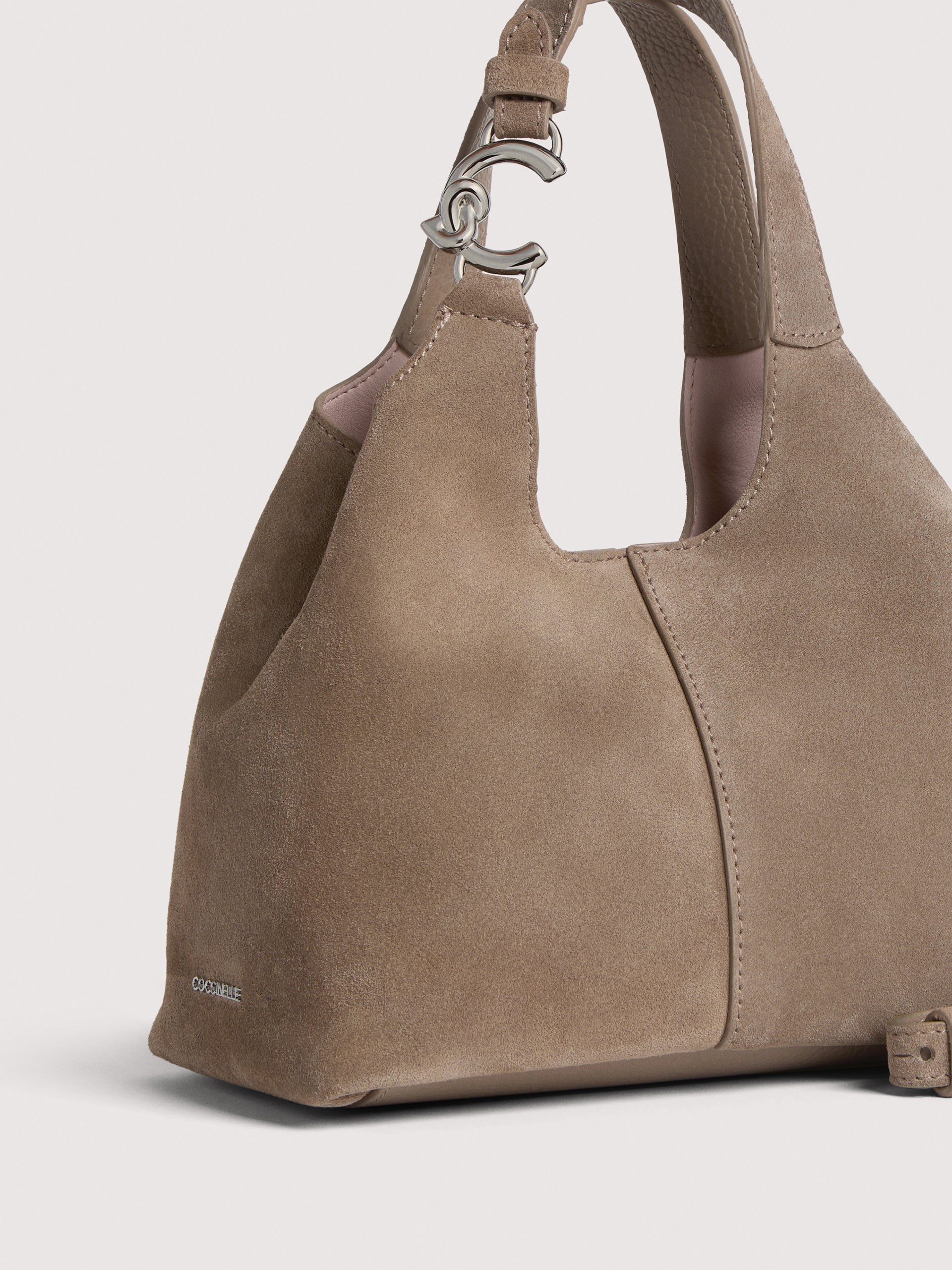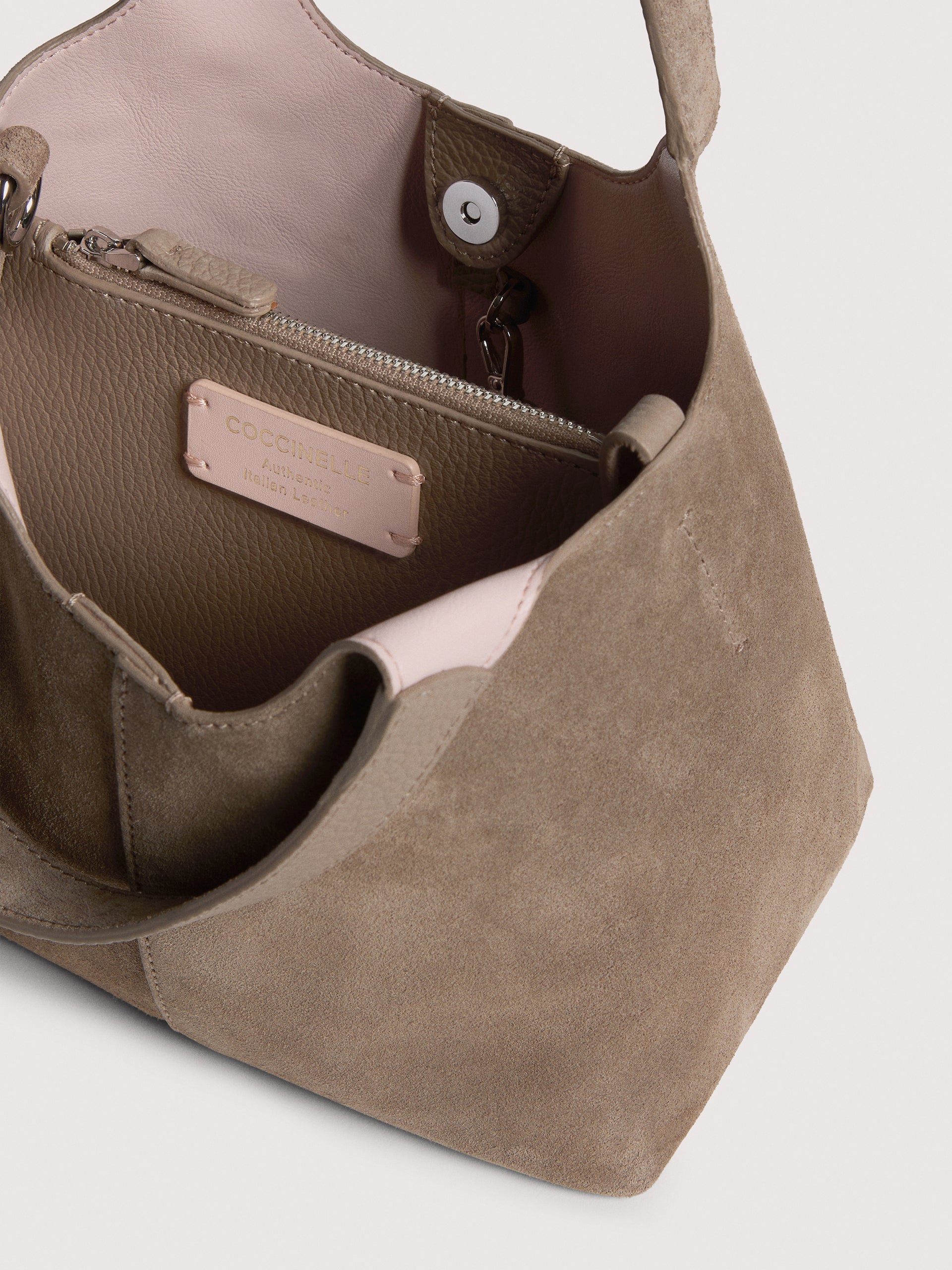 Coccinelle C-Easyは、レザーの美しさを引き立てるしなやかな曲線で形作れられたトートバッグです。 容量とインナーポーチが付随し、デザインの特徴としては、マグネット式の中央で開閉ができ、サイドを開いたままにすることも、レースとボタンスタッドクロージャを通してサイドを折りたたむこともストラップをつけてクロスボディにすることも可能です。 非常に汎用性の高いこのバッグを輝かしてくれるのはハンドル部分の新しい金属製のC-Meロゴです。 このモデルは触感に優しいヴェルヴェットのようなタッチのスエードで作られています。カラーを維持できるよう特別な加工が施されている大変デリケートな素材なため、柔らかいブラシでのお手入れをお勧めします。