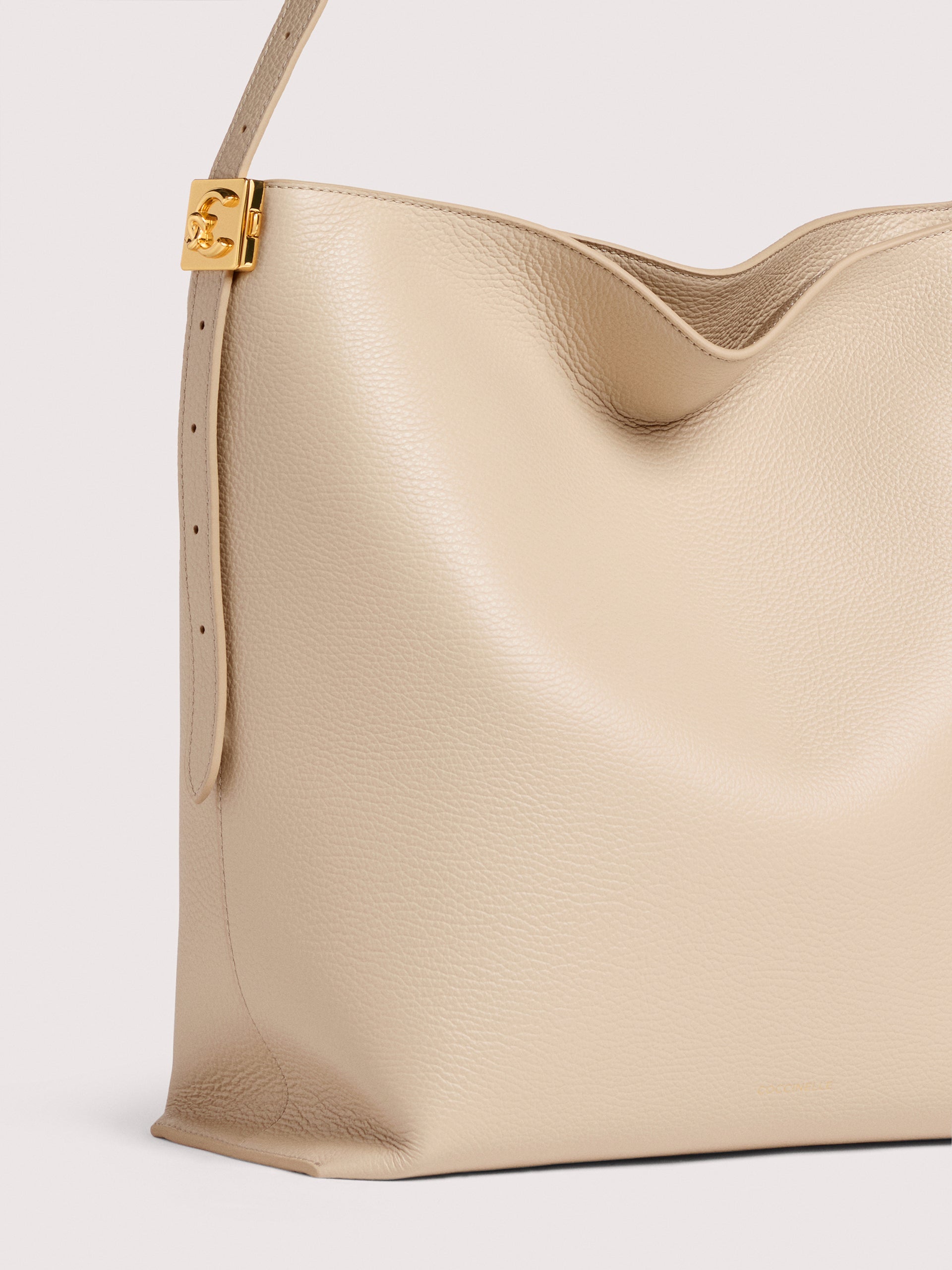 Coccinelle C-Me ロック シリーズは、C-Meロゴを洗練された進化形へと昇華させたもので、現代的な個性を強調するモダンで特徴的な留め具として再解釈されています。C-Meロックは大胆でありながら実用的なデザインで、日常使いに適していながらスタイリッシュなアクセントを添えます。このモデルは特殊な機械で加工したレザーで作られており、その柔らかさを維持するためにタンブリング加工が施されています。非常に丈夫な素材で作られ、手入れの簡単なレザーであるため、日常の使用に最適です。