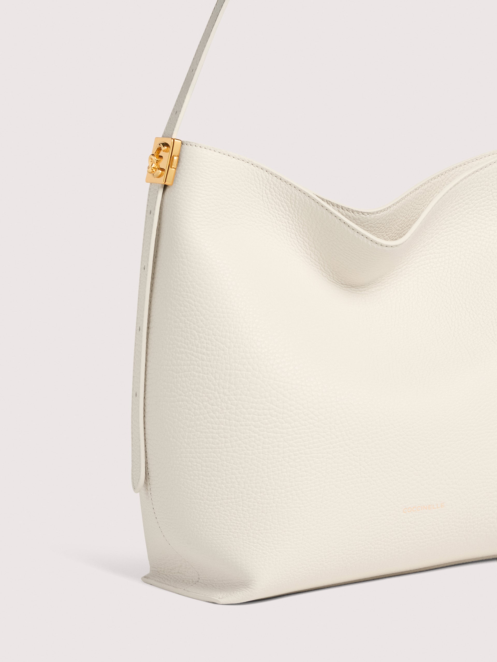 Coccinelle C-Me ロック シリーズは、C-Meロゴを洗練された進化形へと昇華させたもので、現代的な個性を強調するモダンで特徴的な留め具として再解釈されています。C-Meロックは大胆でありながら実用的なデザインで、日常使いに適していながらスタイリッシュなアクセントを添えます。このモデルは特殊な機械で加工したレザーで作られており、その柔らかさを維持するためにタンブリング加工が施されています。非常に丈夫な素材で作られ、手入れの簡単なレザーであるため、日常の使用に最適です。
