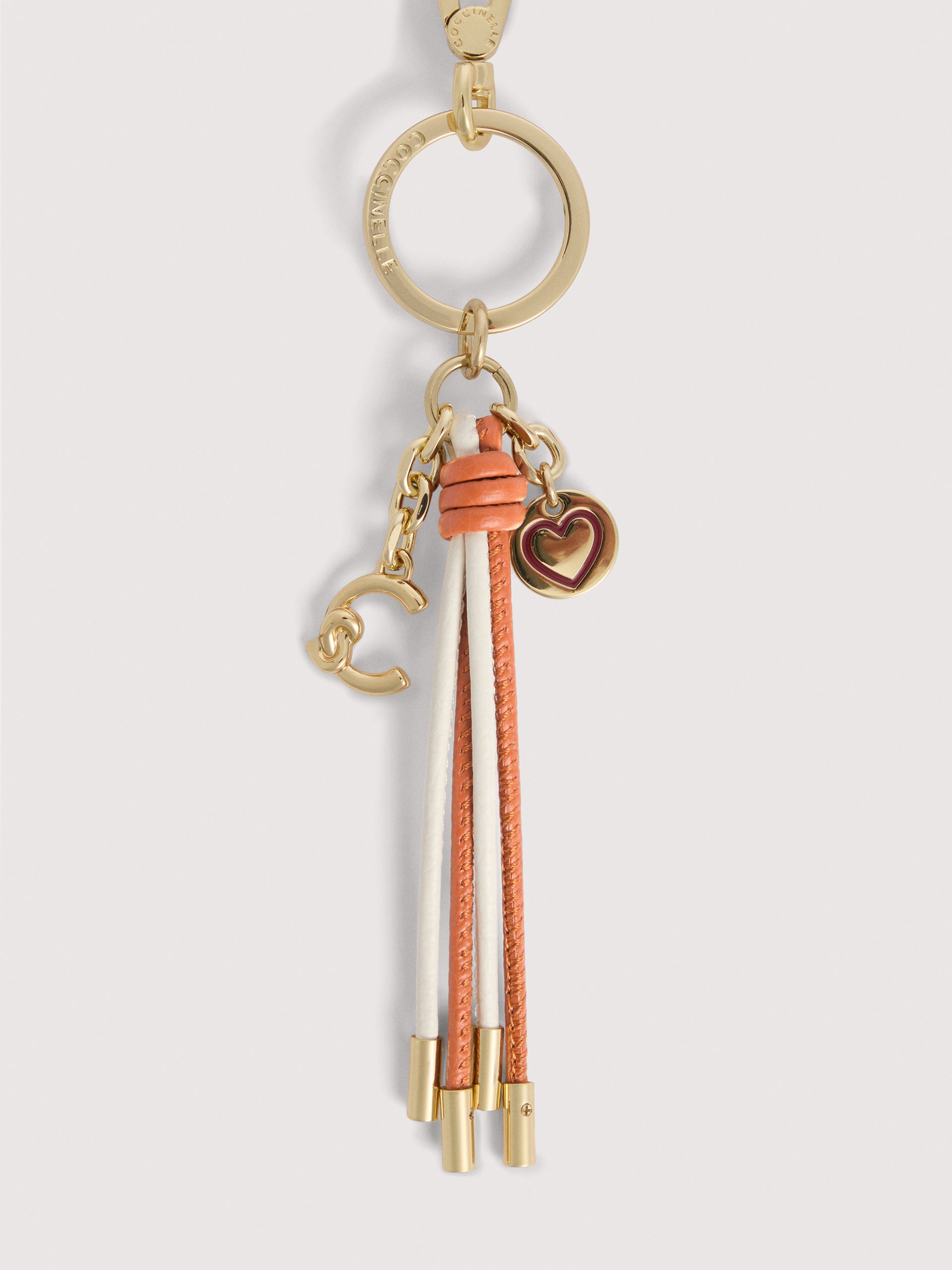 Coccinelle マルチチャームは、カラフルなタッセル、C-Meチャーム、ハートチャームなど複数の要素を組み合わせたキーホルダーです。鍵やバッグを個性的に飾るのに最適です。