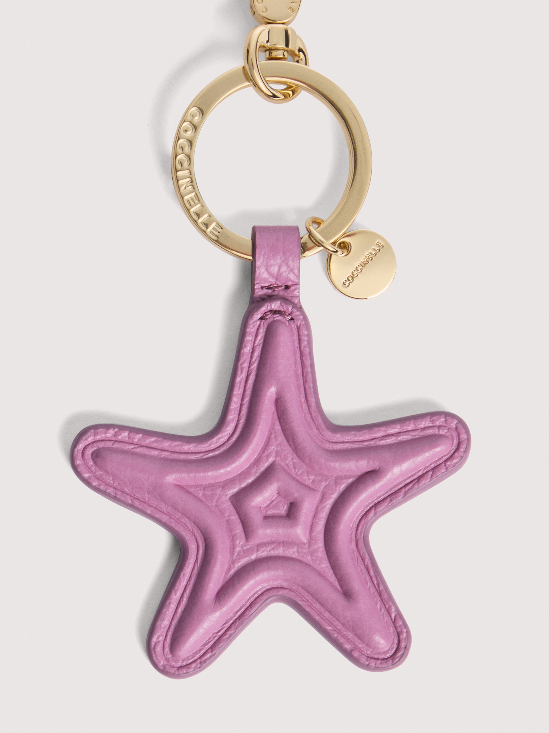 Coccinelle シェル パデッド キーリングで、バッグや鍵を飾りましょう。特殊な高周波加工で切り出されたパーツが、洗練され独特な3Dのチャームを生み出しています。本品は専用機械で加工された革をタンブリング仕上げし、柔らかさを保っています。非常に頑丈で手入れが簡単な革素材のため、日常使いに最適です。