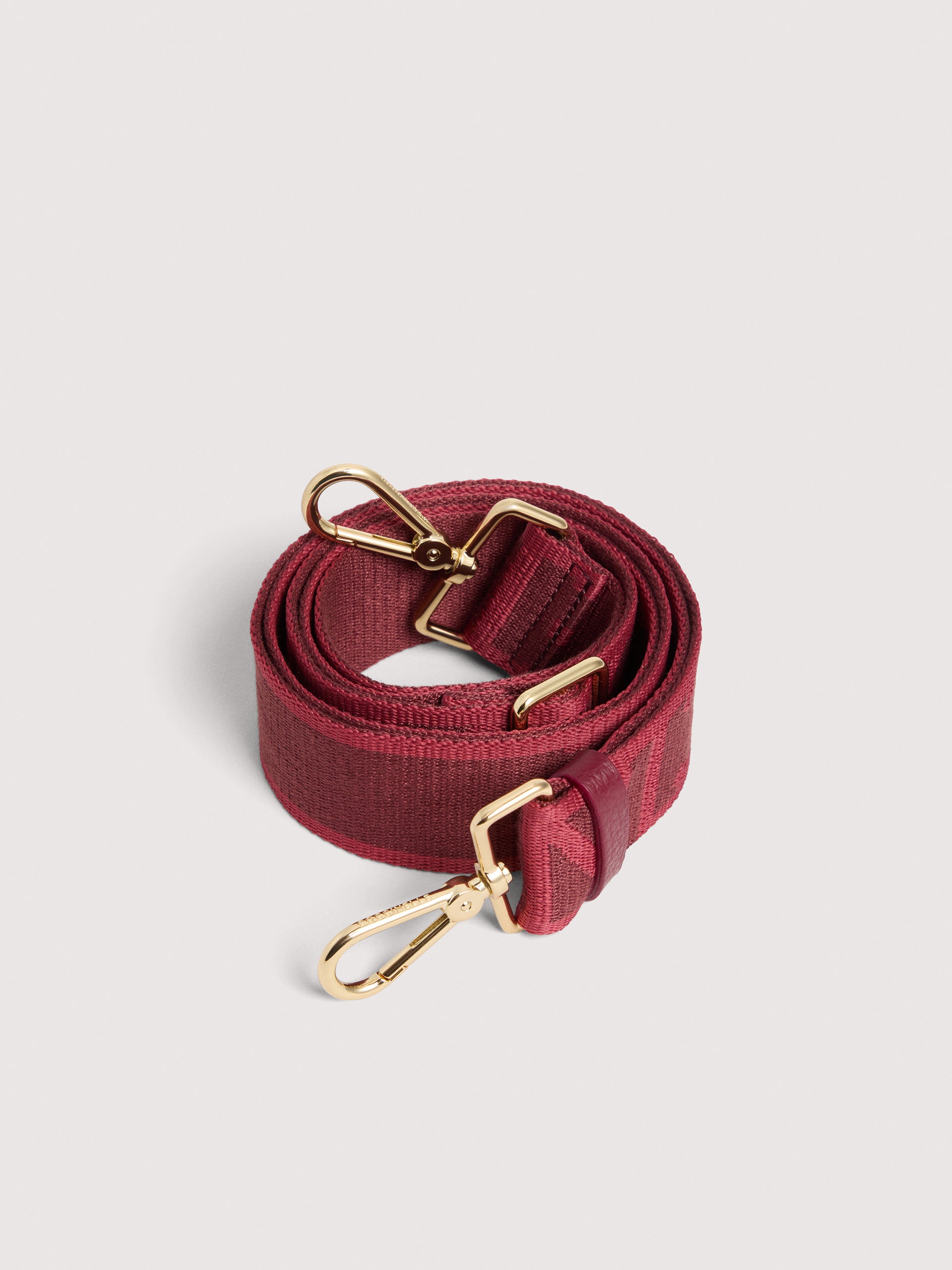 幾何学的な模様の生地が特徴のショルダーストラップ。 スライディングリングで長さ調節が可能で、自由自在にご自身でカスタマイズできます。