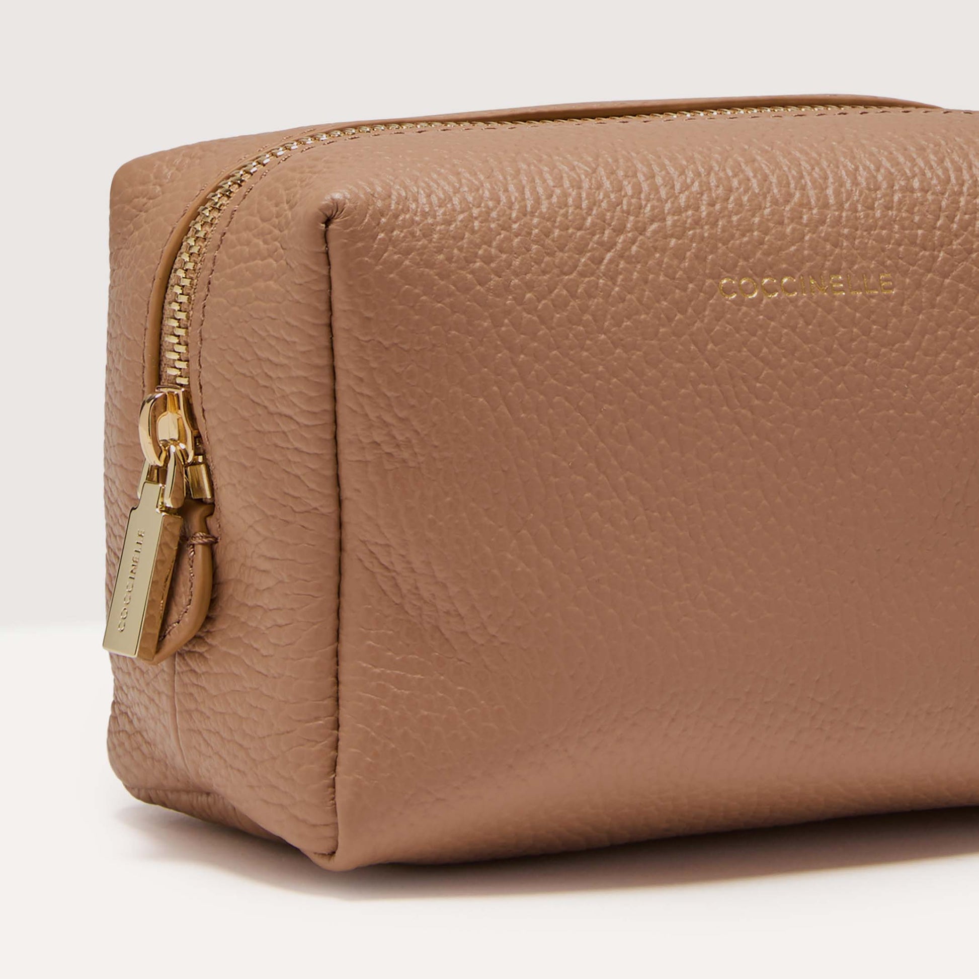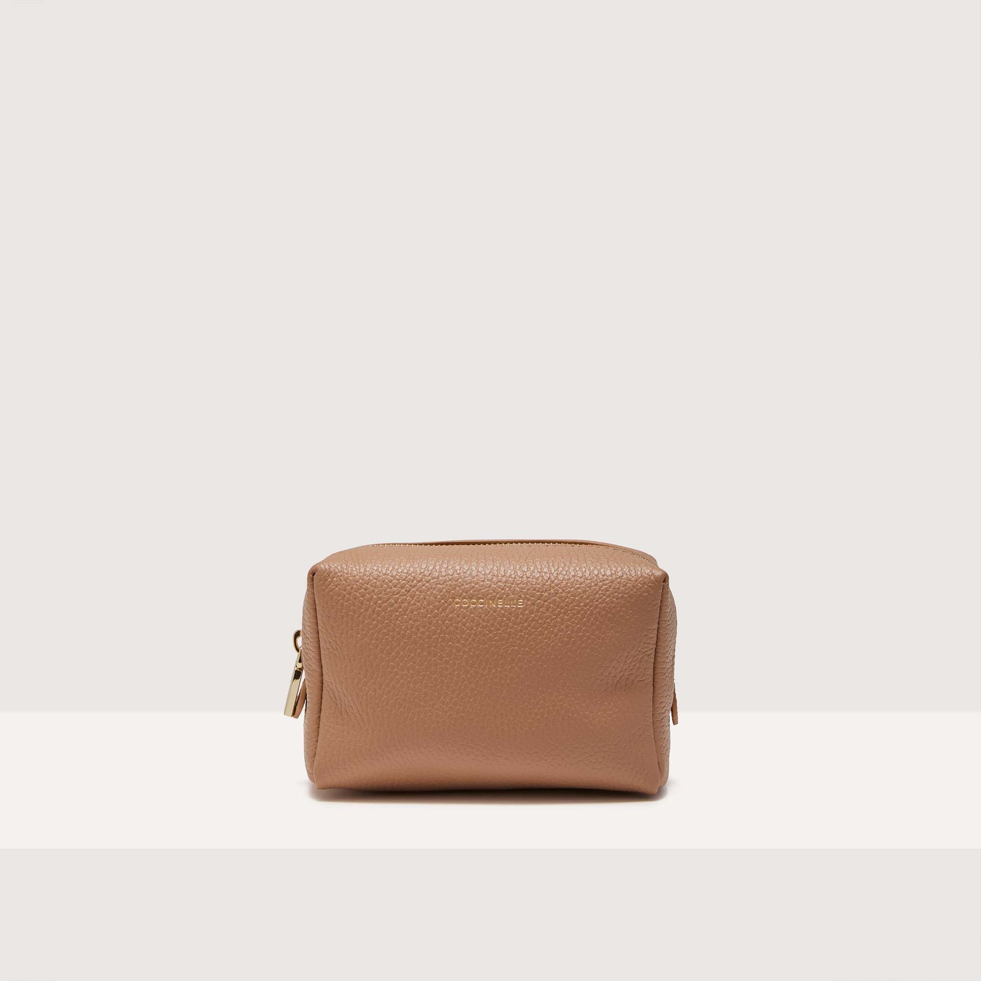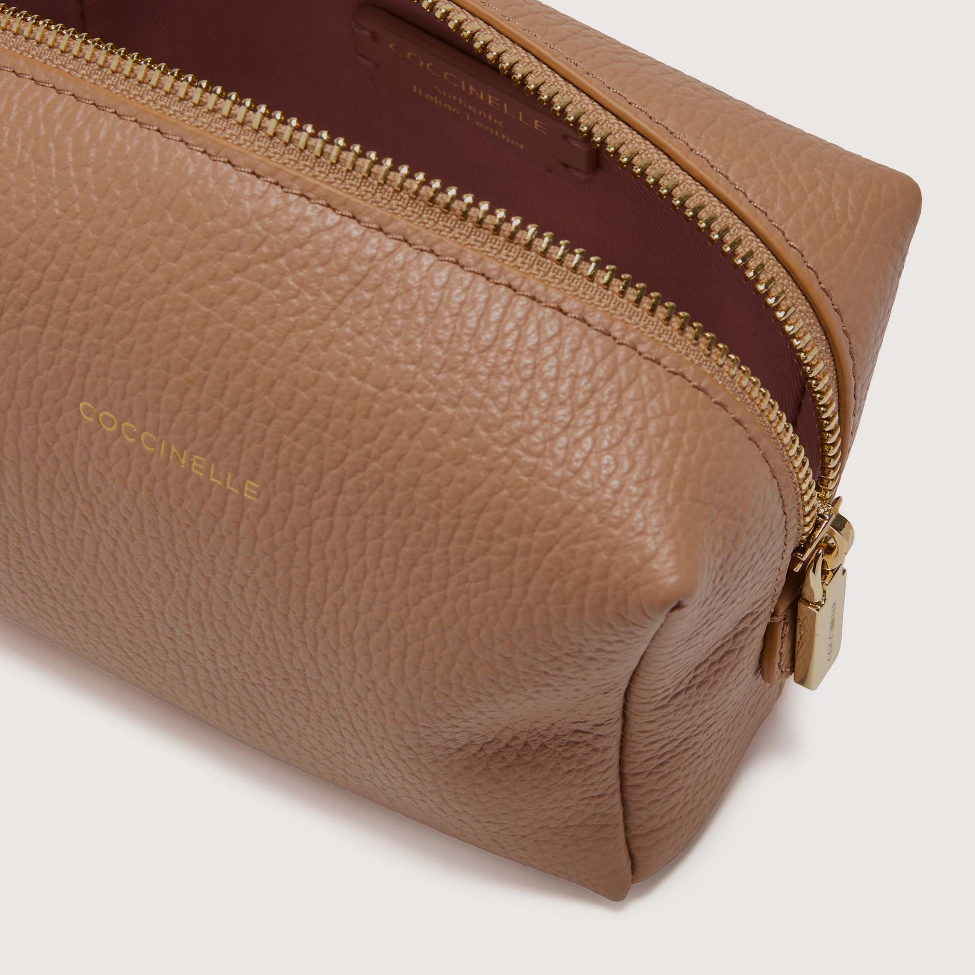 Leather make-up bag in a classic, simple design. This model is made with leather processed using specialised machines and then tumbled to maintain its softness. This is a very robust, easy to clean leather, making it ideal for everyday use.