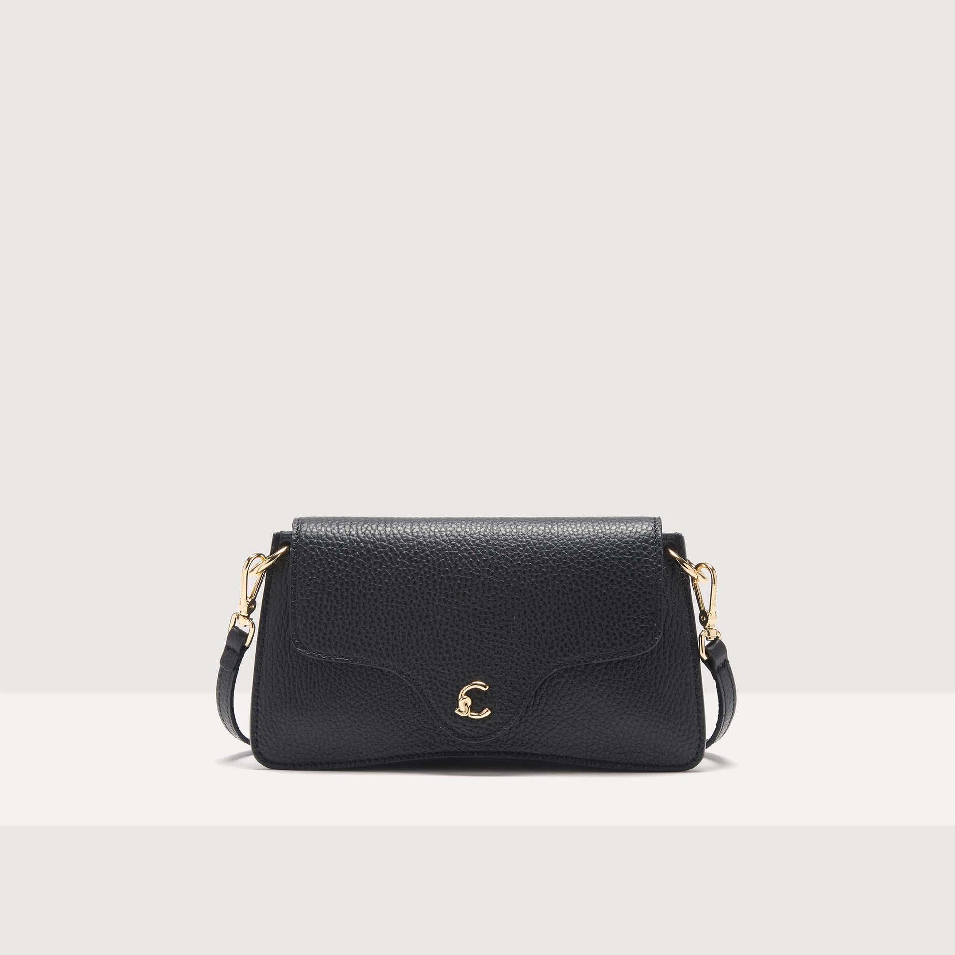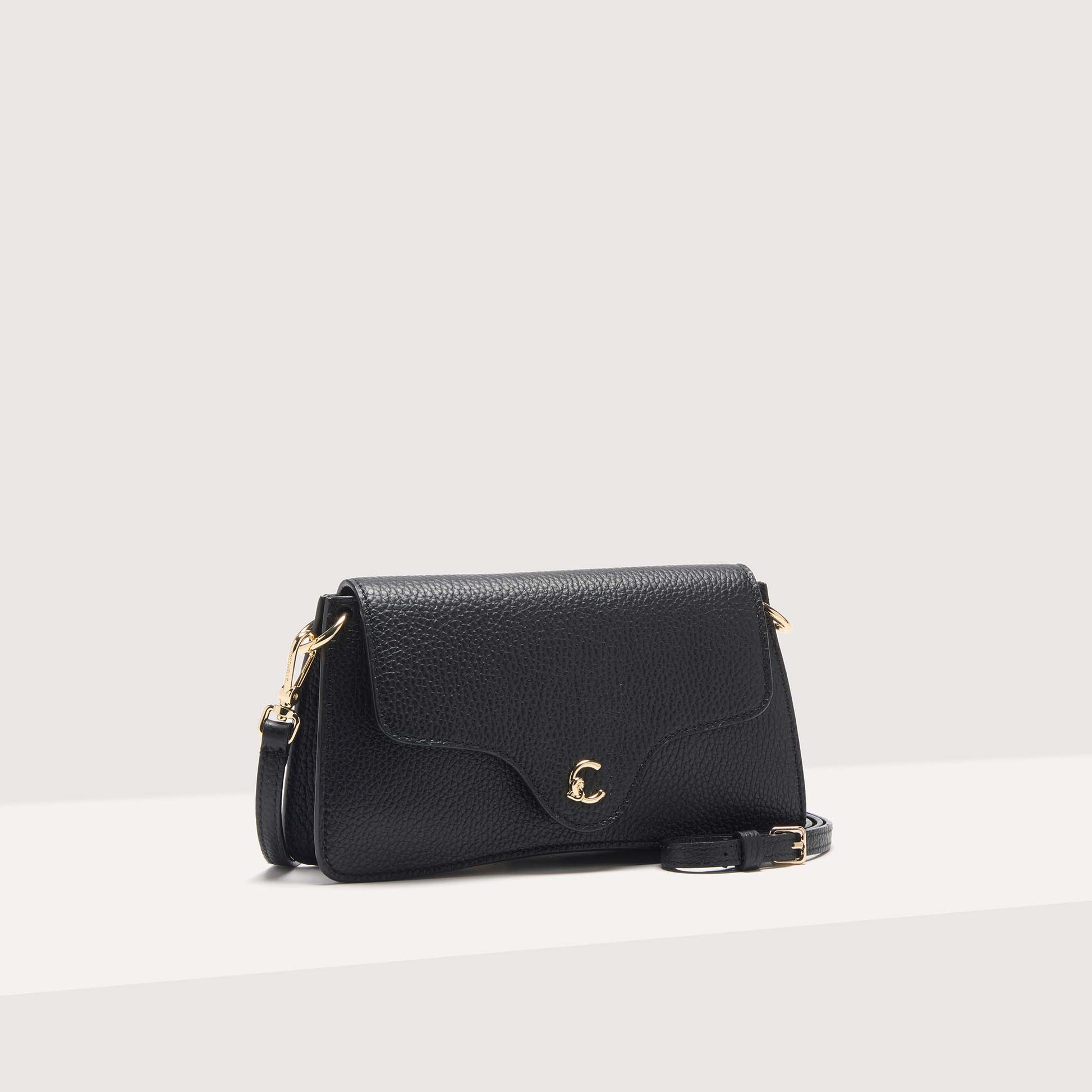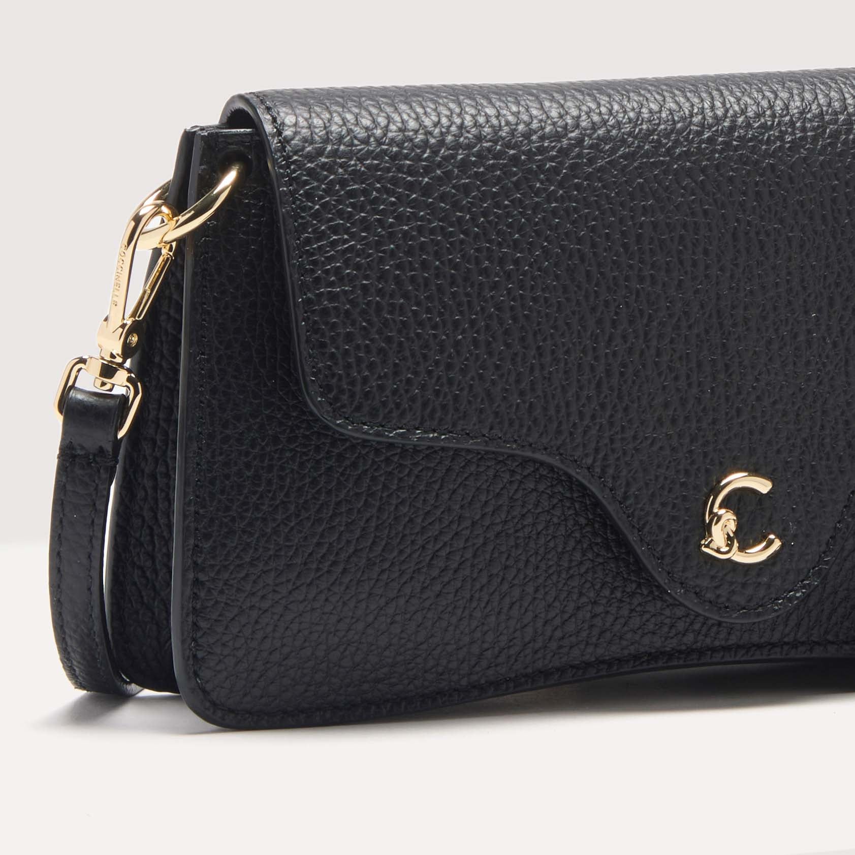 This phone holder from the C-Me line is enhanced by the logo reimagined with the C of Coccinelle, which knots around and embraces the plectrum, an iconic element of the brand. A feminine and stylish design, thanks to the curvaceous details of the flap, making it perfect for enhancing any outfit. This model is made with leather processed using specialised machines and then tumbled to maintain its softness. This is a very robust, easy to clean leather, making it ideal for everyday use.