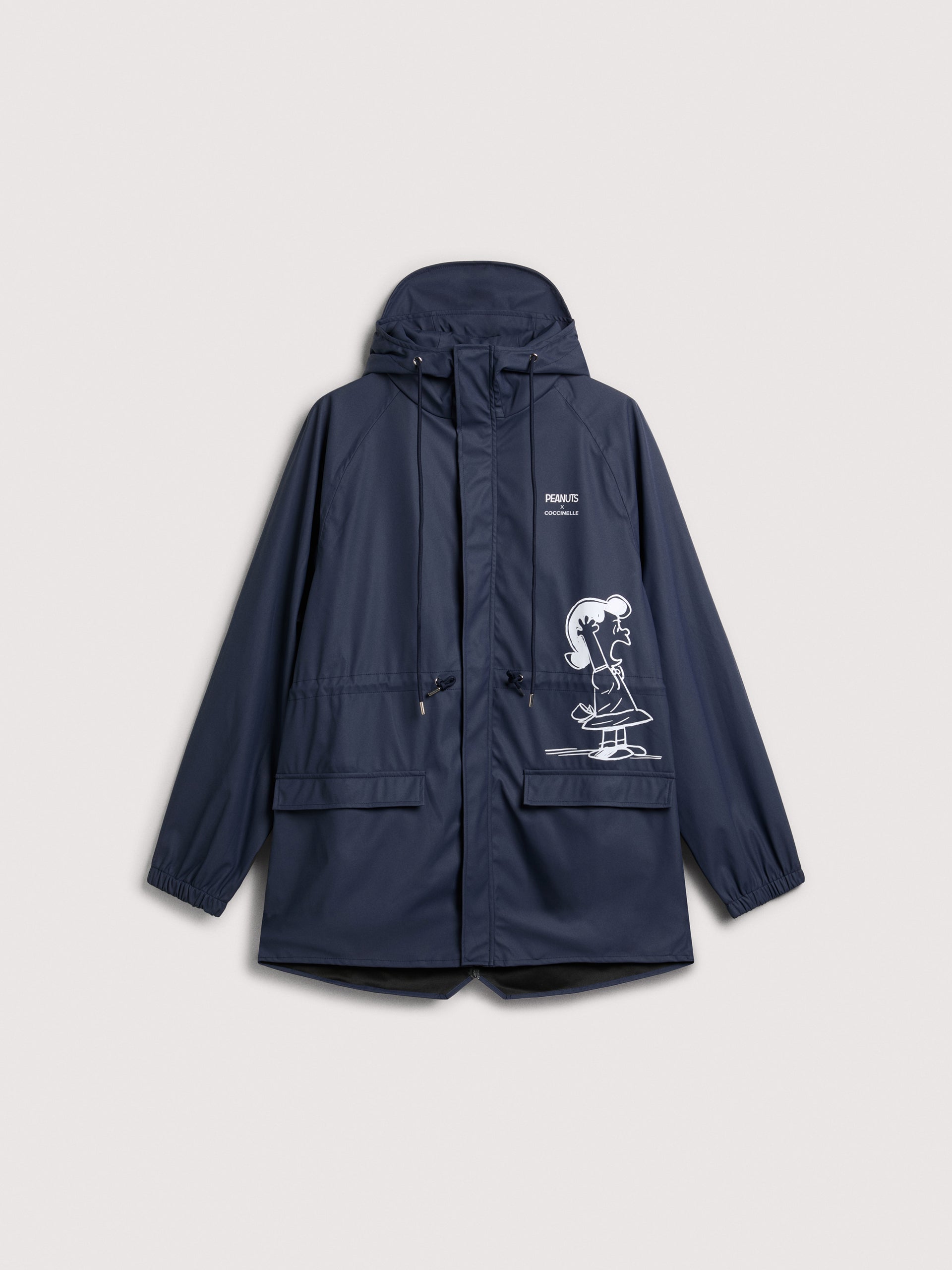 世界で最もアイコニックで愛され続けている漫画『ピーナッツ』の75周年を記念し、コチネッレは特別なパートナーシップを組みました。二つの異なった世界感の融合から生まれた限定アクセサリーコレクションは、洗練されたイタリアデザインと、ピーナッツの不朽のキャラクターたちの遊び心あふれる精神を融合させています。個性的でありながら実用性を求める方々のためにデザインされたこのレインコートは、軽くモダンなシルエットで仕上がっています。雨の日に最適な、限定デザイン。本モデルは、再生ポリエステル糸を使用した織物ベースに、防水性と耐久性を高めるカラーポリウレタンコーティングを施しています。再生ポリエステルは生分解性のない素材を活かしており、品質面ではバージンポリエステルと同等でありながら、製造に必要なエネルギーを59%削減できています。この素材はGRS認証を正式に取得しています。