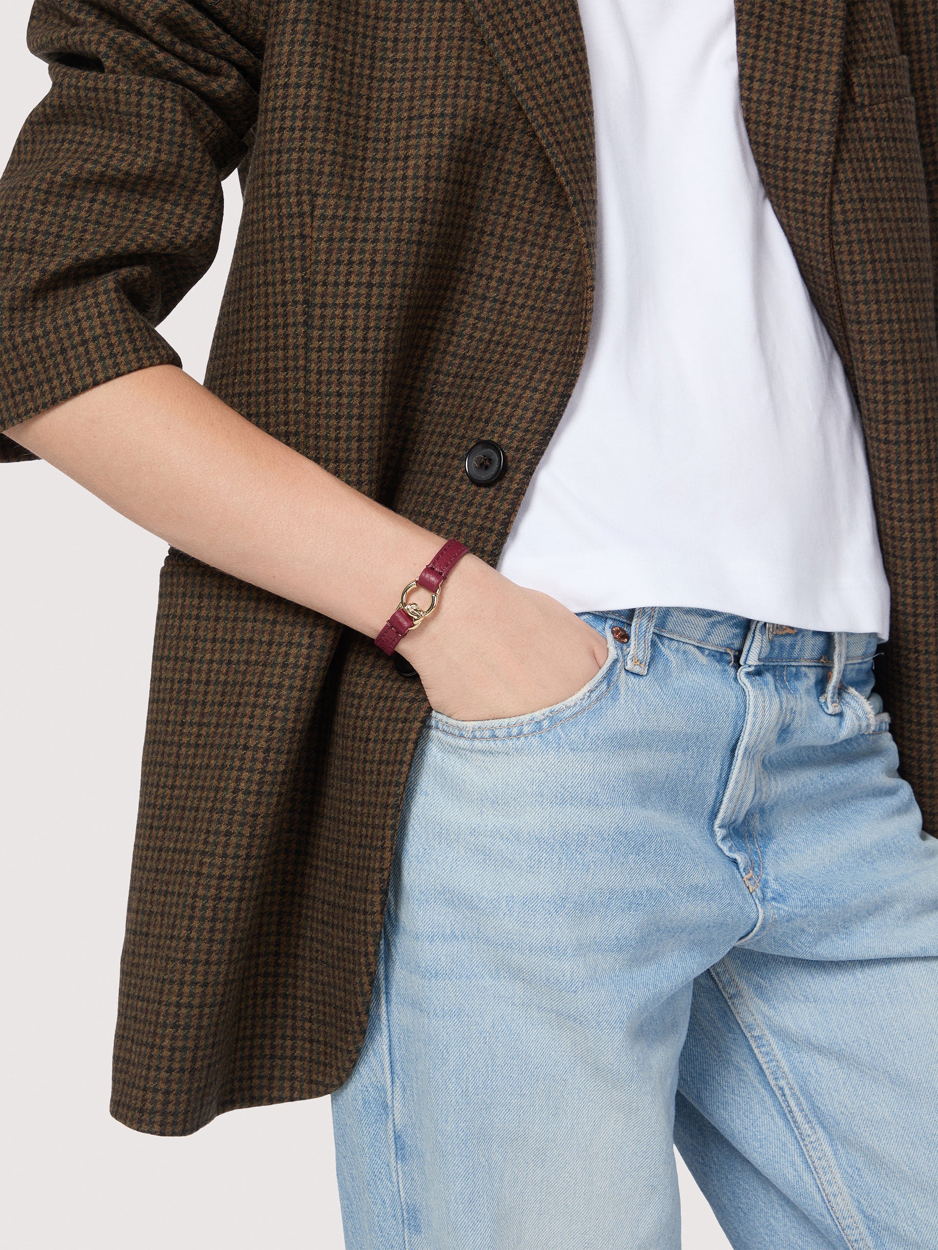 C-meロゴの詳細など、主なシグネチャーの詳細は、Coccinelle C-Easyラインのレザーブレスレットに記載されています。