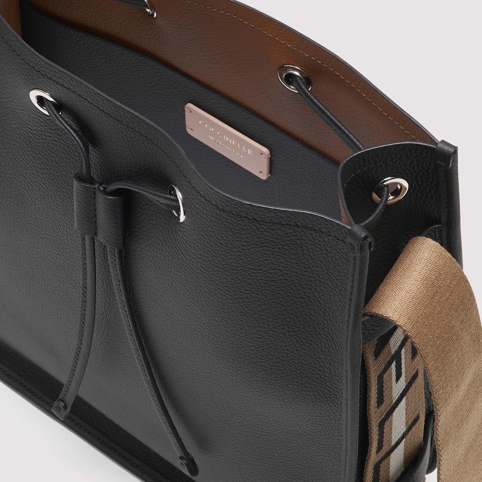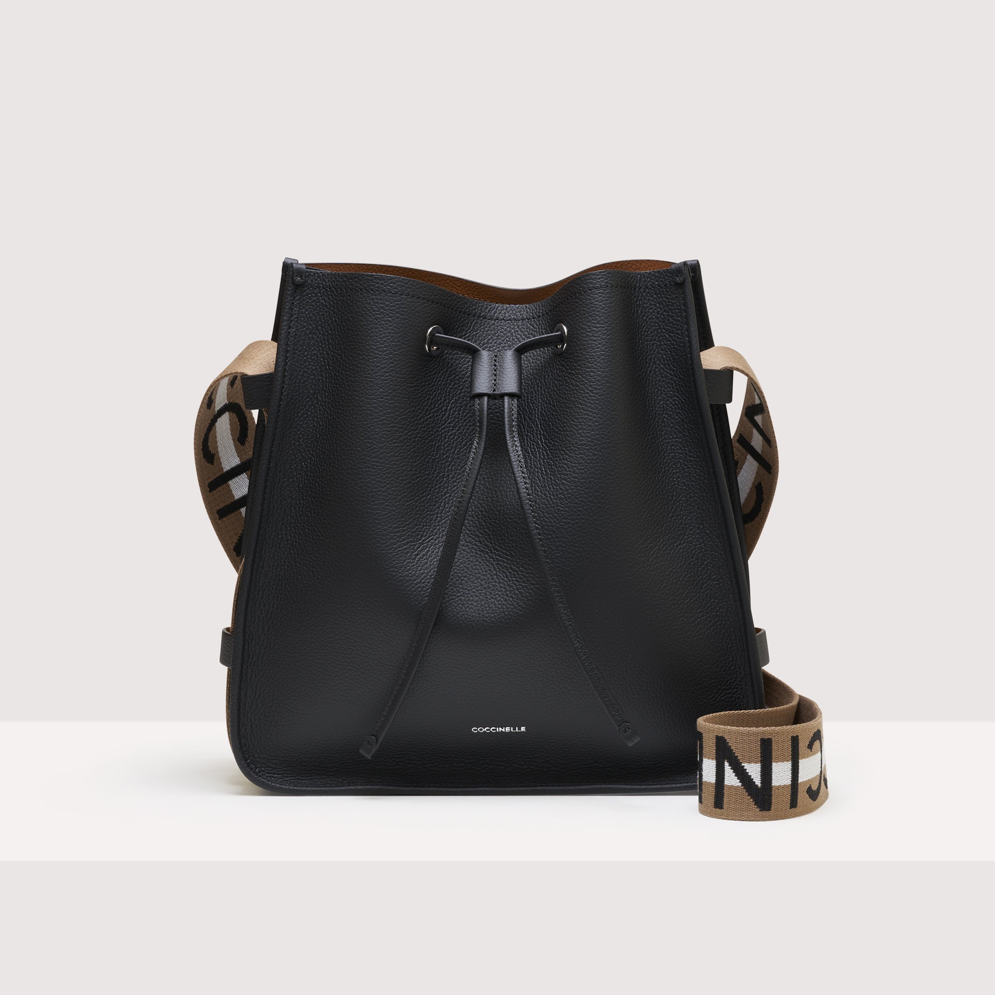 丸みを帯びたシルエットが特徴のコチネッレラケルコレクション。大きなコチネッレのロゴ入りショルダーストラップがユニークなスタイルに仕上げます。両面に対照的な色のレザーを使用したダブルグレインレザーはオリジナルなツイストを与え、ショルダーストラップは必要に応じてバッグを調節することが可能です。