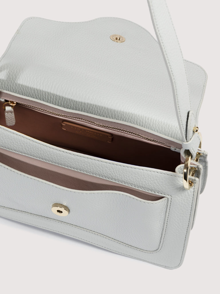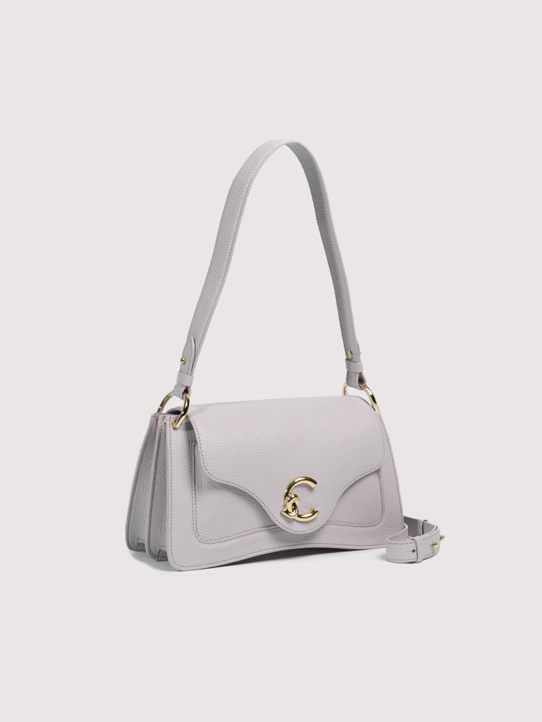 新しいブランドの象徴:コチネッレ C-ME。この新しいロゴはブランドのアイコンであるプレクトラムとブランドの頭文字”C"が統合したもので、女性の人生の過去と未来が絡み合いながら流れる様子を象徴してます。幾何学的なラインと洗練された曲線と、ガセット構造は機能性と細やかな優雅さをブレンドしたバッグで、コチネッレを愛する女性にとって毎日欠かせないバッグとなってます。このモデルは特殊な機械で加工したレザーで作られており、その柔らかさを維持するためにタンブリング加工が施されています。非常に丈夫な素材で作られ、手入れの簡単なレザーであるため、日常の使用に最適です。