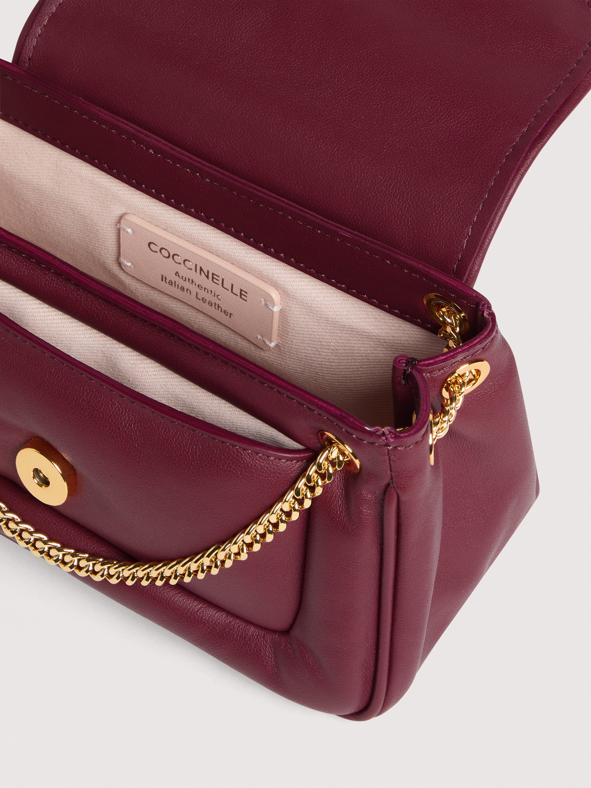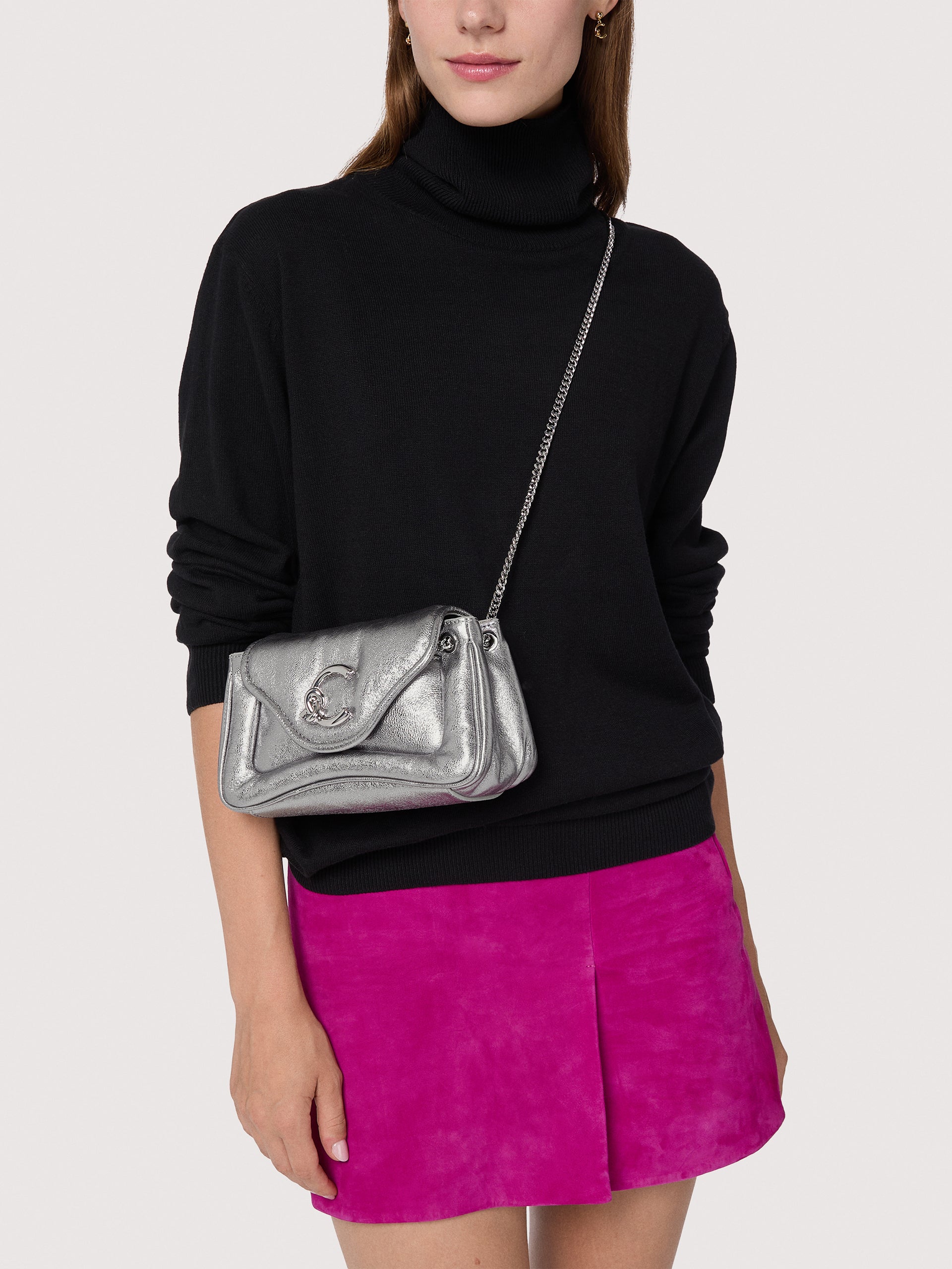 新しいブランドの象徴:コチネッレ C-ME。この新しいロゴはブランドのアイコンであるプレクトラムとブランドの頭文字”C"が統合したもので、女性の人生の過去と未来が絡み合いながら流れる様子を象徴してます。幾何学的なラインと洗練された曲線と、ガセット構造は機能性と細やかな優雅さをブレンドしたバッグで、コチネッレを愛する女性にとって毎日欠かせないバッグとなってます。このモデルは特殊な機械で加工したレザーで作られており、その柔らかさを維持するためにタンブリング加工が施されています。非常に丈夫な素材で作られ、手入れの簡単なレザーであるため、日常の使用に最適です。
