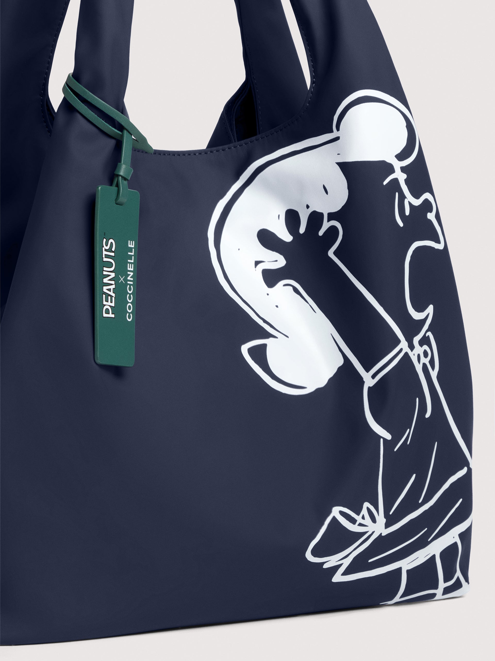 世界で最もアイコニックで愛され続けている漫画『ピーナッツ』の75周年を記念し、コチネッレは特別なパートナーシップを組みました。二つの異なった世界感の融合から生まれた限定アクセサリーコレクションは、洗練されたイタリアデザインと、ピーナッツの不朽のキャラクターたちの遊び心あふれる精神を融合させています。このトートバッグは、たっぷりとした収納力と使いやすさでどんなスタイリングにでもあわせていただけます。ミニマルで洗練されたデザインに、実用的で快適なレザーショルダーストラップが加わり、多様性とエレガンスを兼ね備えたバッグになっています。本モデルは、再生ポリエステル糸を使用した織物ベースに、防水性と耐久性を高めるカラーポリウレタンコーティングを施しています。再生ポリエステルは生分解性のない素材を活かしており、品質面ではバージンポリエステルと同等でありながら、製造に必要なエネルギーを59%削減できています。この素材はGRS認証を正式に取得しています。