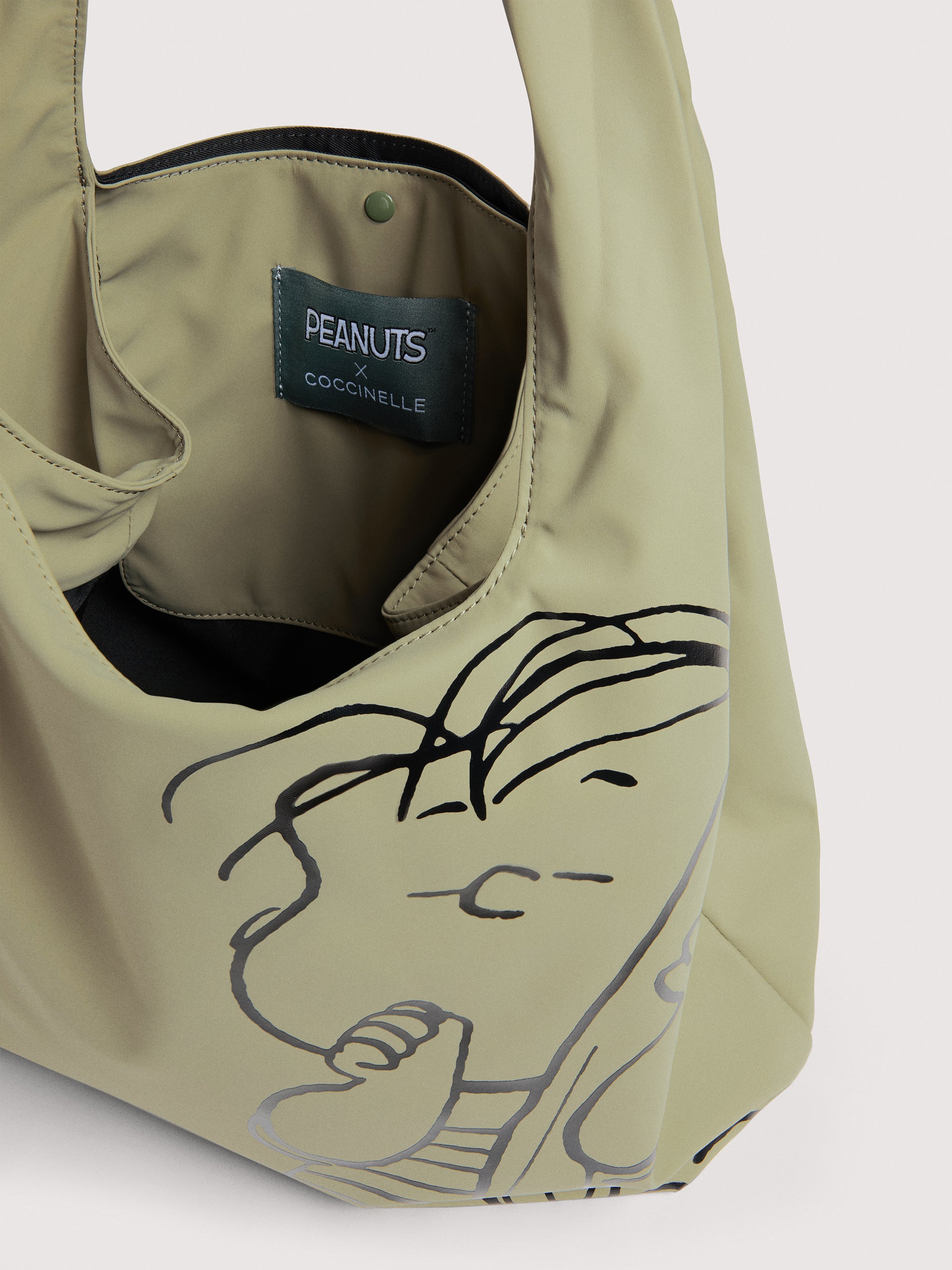 世界で最もアイコニックで愛され続けている漫画『ピーナッツ』の75周年を記念し、コチネッレは特別なパートナーシップを組みました。二つの異なった世界感の融合から生まれた限定アクセサリーコレクションは、洗練されたイタリアデザインと、ピーナッツの不朽のキャラクターたちの遊び心あふれる精神を融合させています。このトートバッグは、たっぷりとした収納力と使いやすさでどんなスタイリングにでもあわせていただけます。ミニマルで洗練されたデザインに、実用的で快適なレザーショルダーストラップが加わり、多様性とエレガンスを兼ね備えたバッグになっています。本モデルは、再生ポリエステル糸を使用した織物ベースに、防水性と耐久性を高めるカラーポリウレタンコーティングを施しています。再生ポリエステルは生分解性のない素材を活かしており、品質面ではバージンポリエステルと同等でありながら、製造に必要なエネルギーを59%削減できています。この素材はGRS認証を正式に取得しています。