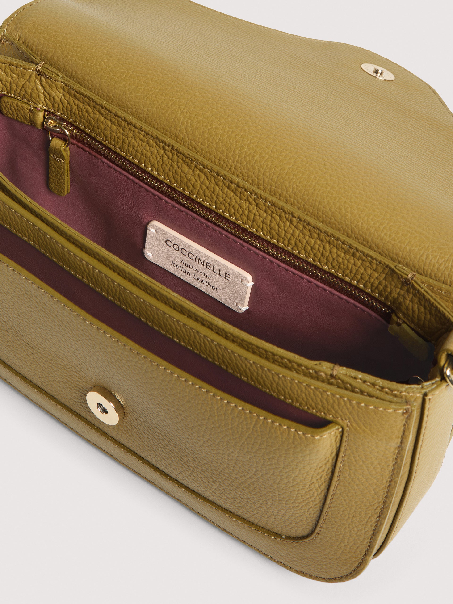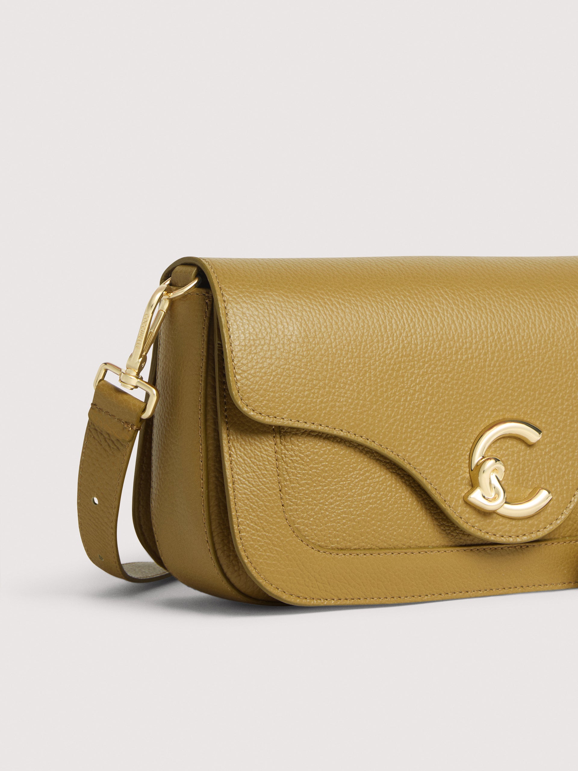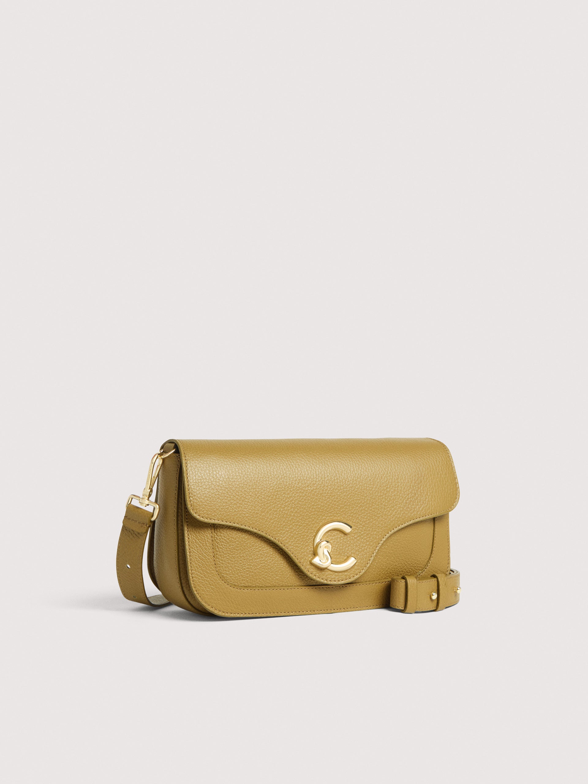 新しいブランドの象徴:コチネッレ C-ME。ロゴはCoccinelleのCで再構築されています。「C」はブランドの象徴的な要素であるプレクトラムと絡み合ったもので、女性の過去と現在の女性の人生が絡み合うことを象徴してます。幾何学的なラインと洗練された曲線のデザインが魅力的で、ガセット構造は機能性と細やかな優雅さをブレンドしたバッグで、コチネッレの女性にとって毎日のお出かけに欠かせないバッグとなってます。このモデルはスムースレザーを使用し、耐久性と洗練された印象を与えます。
