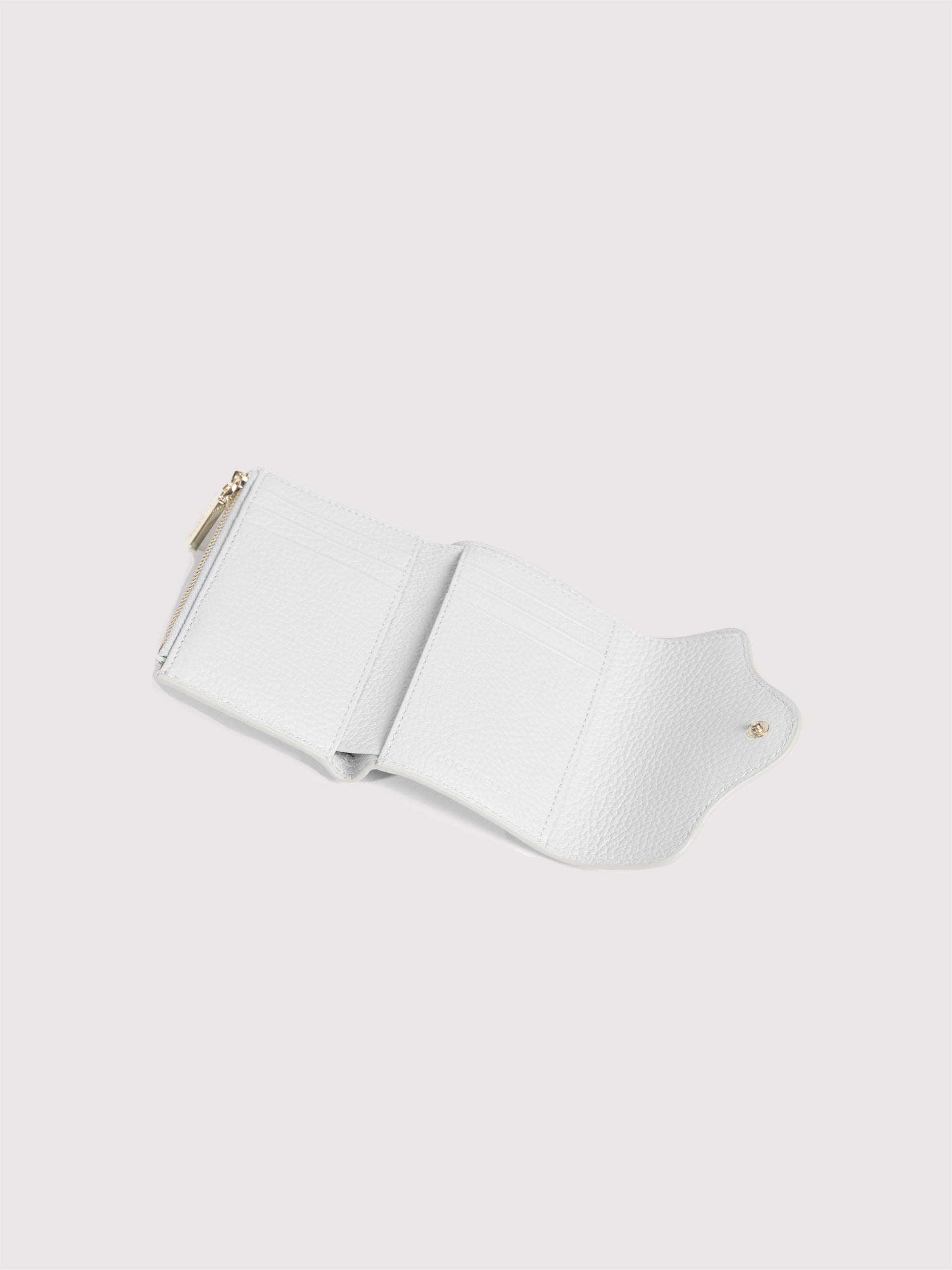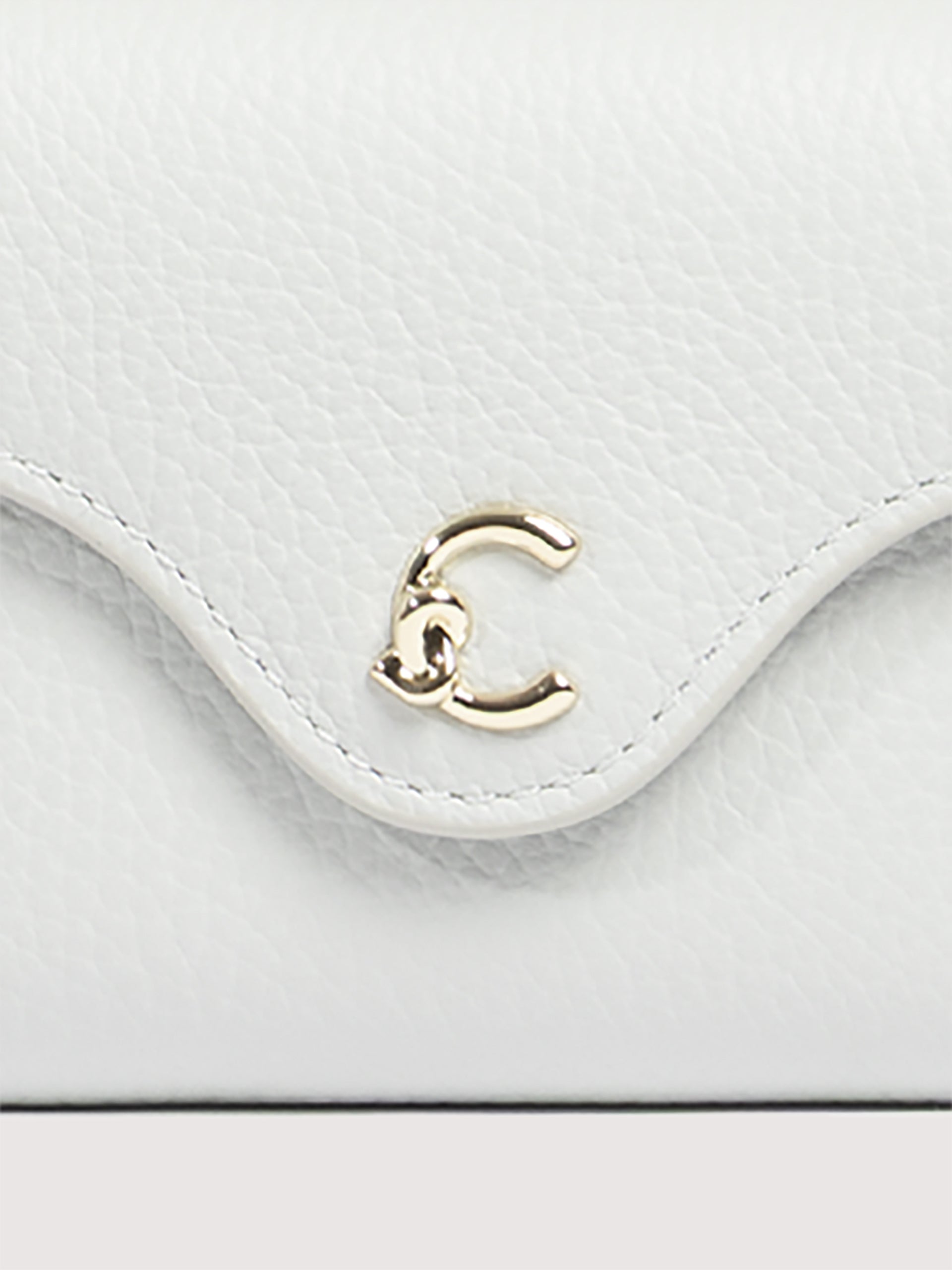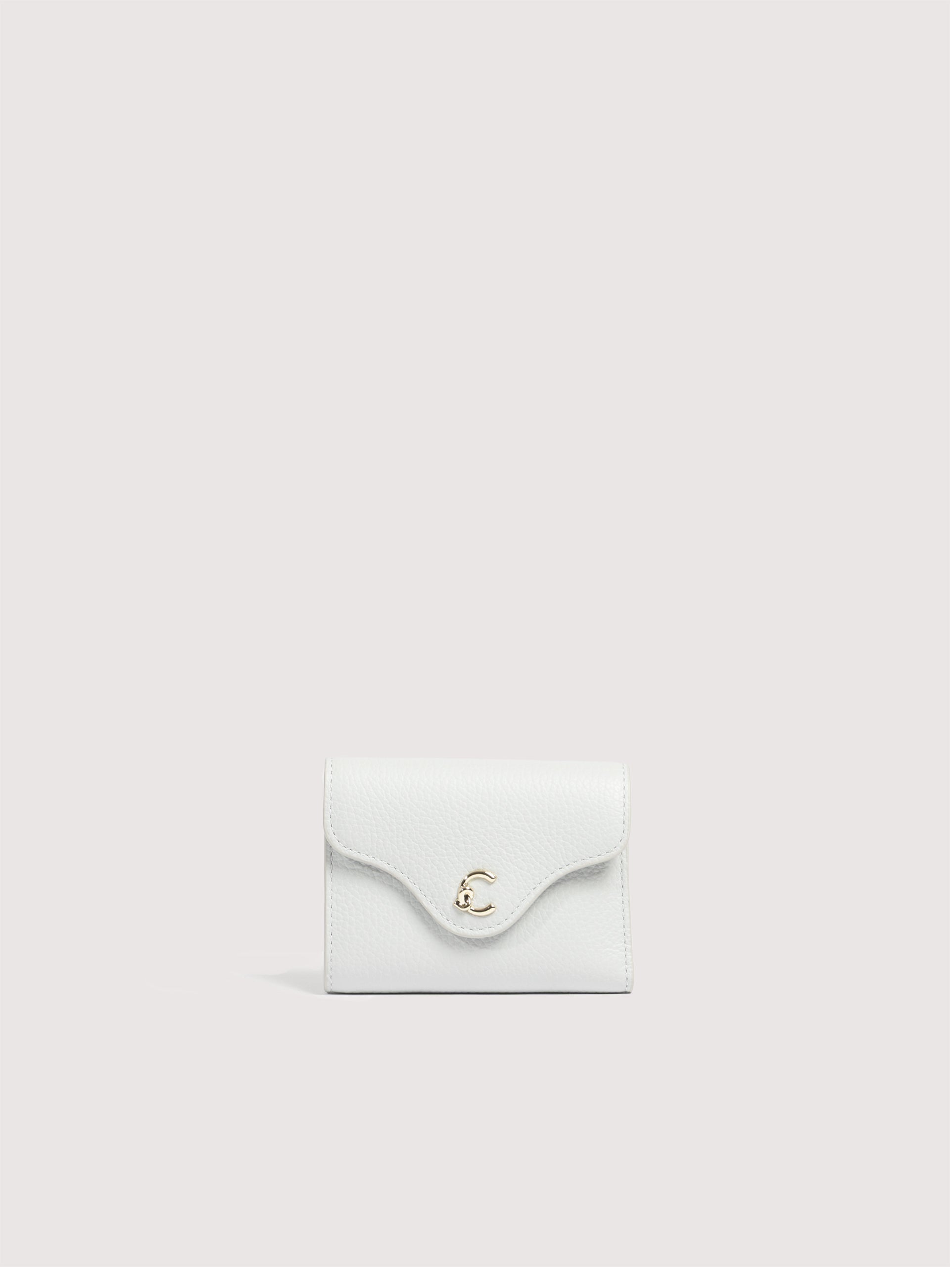 C-MEラインのフラップ式が特徴のスモールウォレット。ロゴにはCoccinelleの「C」が再構築されたデザインが施されています。中のスペースは、必要なアイテムを丁寧に整理するために構成されています。このモデルは特殊な機械で加工したレザーで作られており、その柔らかさを維持するためにタンブリング加工が施されています。非常に丈夫で、お手入れの簡単なレザーであるため、日常の使用に最適です。