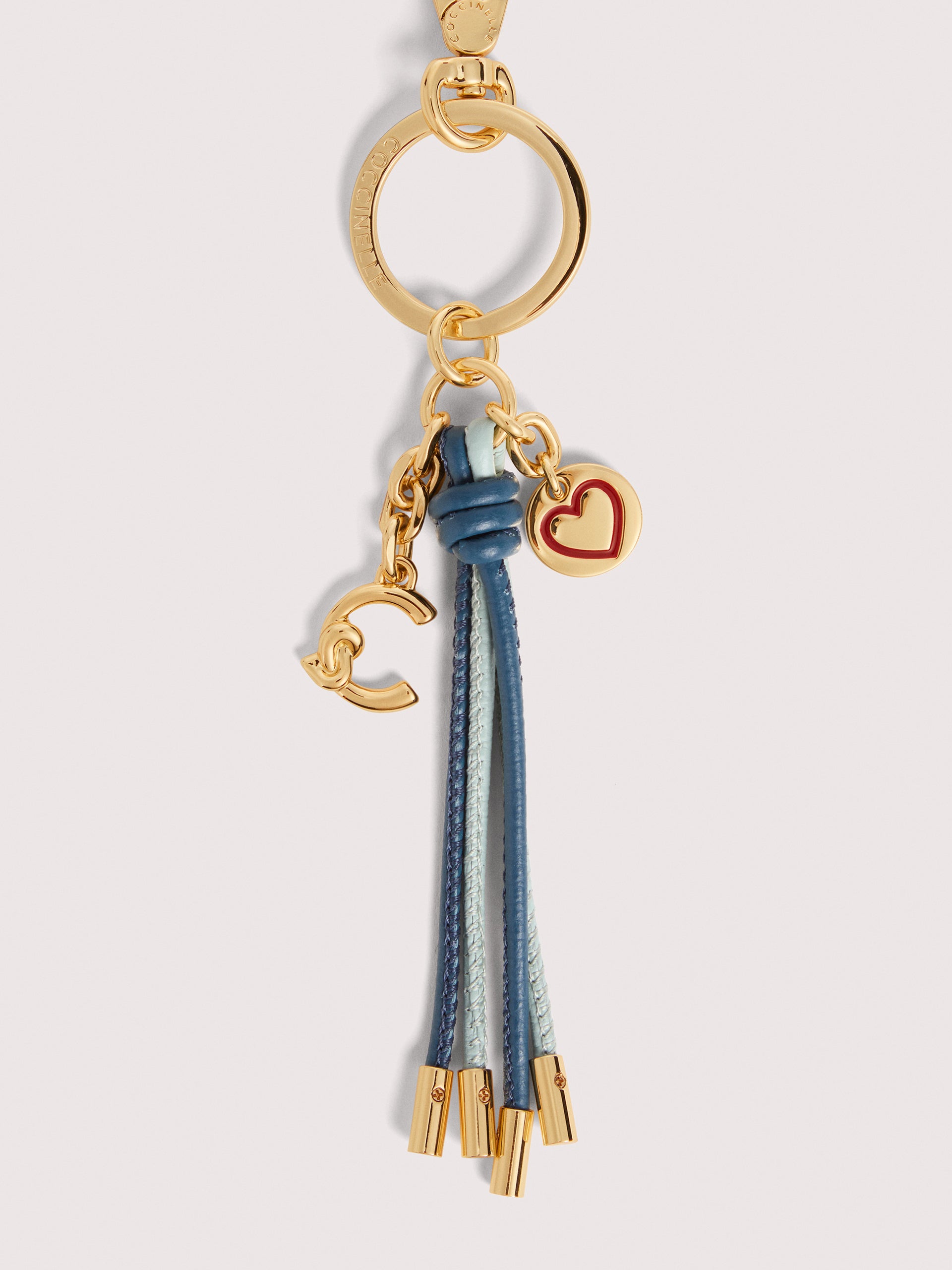Coccinelle マルチチャームは、カラフルなタッセル、C-Meチャーム、ハートチャームなど複数の要素を組み合わせたキーホルダーです。鍵やバッグを個性的に飾るのに最適です。