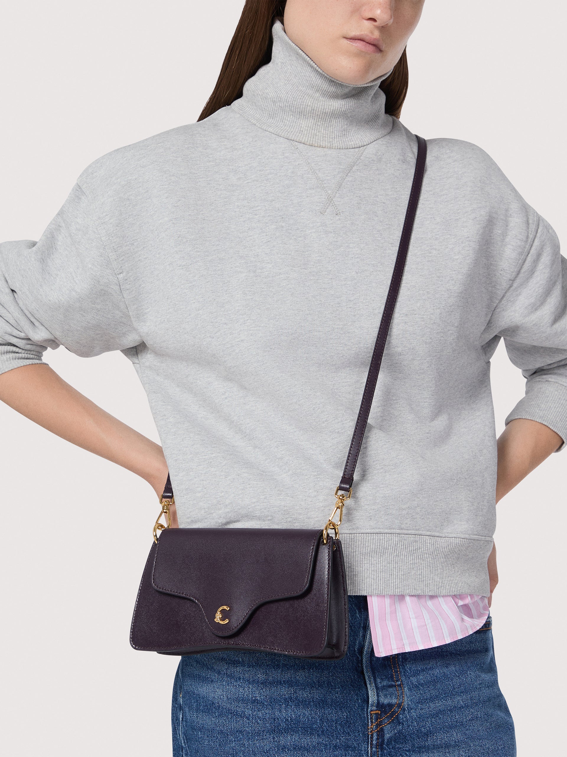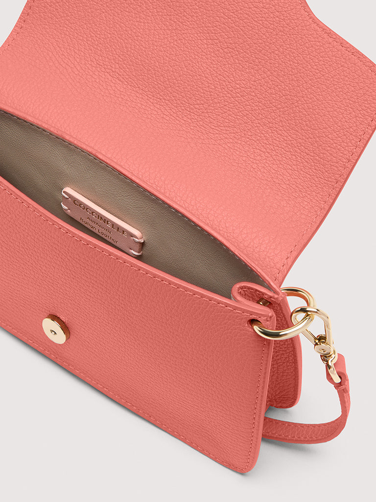 Coccinelle C-MEラインの携帯ホルダー。ブランドのアイコニックなプレクトラムを再構築したCoccinelleの「C」の結び目のロゴデザインが施されている魅力的なデザインのフォンホルダーです。女性らしくスタイリッシュなデザインで、フラップの曲線的なディテールにより、どんなコーデにも最適です。 このモデルは特殊な機械で加工したレザーで作られており、その柔らかさを維持するためにタンブリング加工が施されています。非常に丈夫な素材で作られ、お手入れの簡単なレザーであるため、日常の使用に最適です。