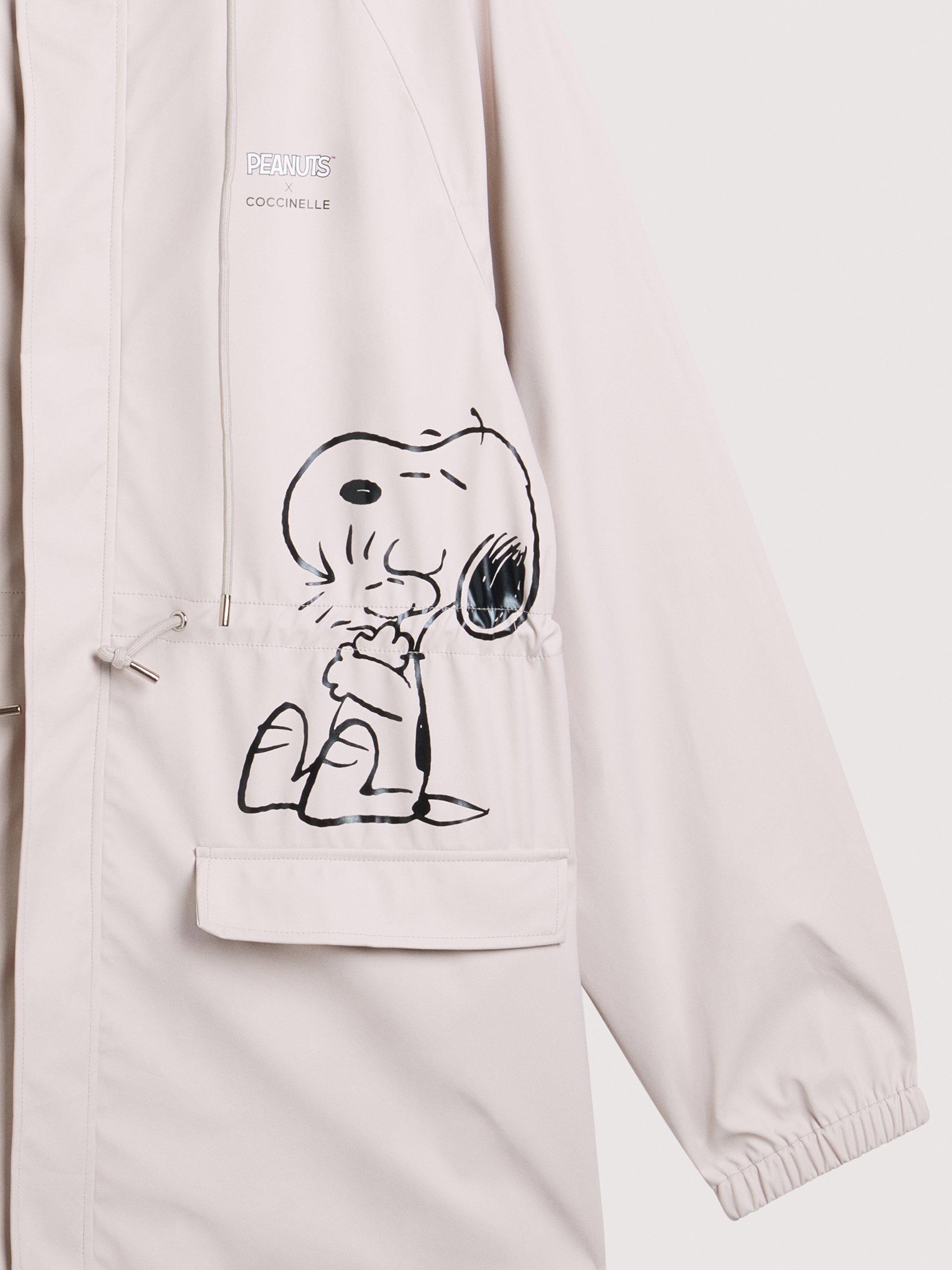 世界で最もアイコニックで愛され続けている漫画『ピーナッツ』の75周年を記念し、コチネッレは特別なパートナーシップを組みました。二つの異なった世界感の融合から生まれた限定アクセサリーコレクションは、洗練されたイタリアデザインと、ピーナッツの不朽のキャラクターたちの遊び心あふれる精神を融合させています。個性的でありながら実用性を求める方々のためにデザインされたこのレインコートは、軽くモダンなシルエットで仕上がっています。雨の日に最適な、限定デザイン。本モデルは、再生ポリエステル糸を使用した織物ベースに、防水性と耐久性を高めるカラーポリウレタンコーティングを施しています。再生ポリエステルは生分解性のない素材を活かしており、品質面ではバージンポリエステルと同等でありながら、製造に必要なエネルギーを59%削減できています。この素材はGRS認証を正式に取得しています。